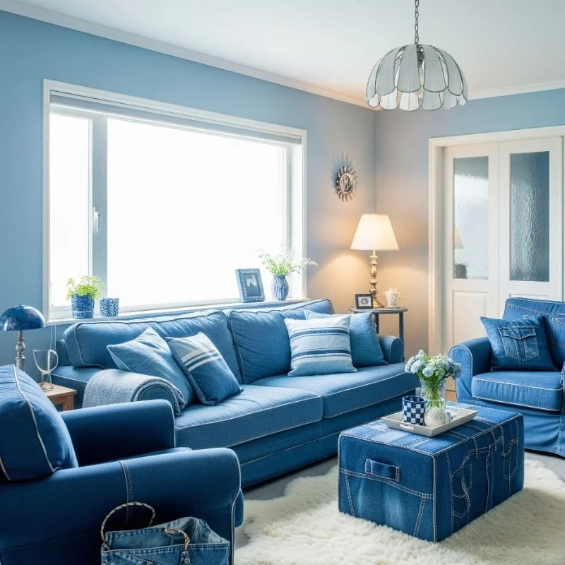 Embrace relaxed sophistication with denim blue elements that bring casual comfort and timeless appeal to your living room design scheme. This approachable shade works like your favorite pair of jeans, providing familiar comfort while maintaining enough style to feel intentional and polished. Incorporate denim blue through upholstered furniture, painted furniture pieces, or large area rugs that ground your space with this versatile, livable color. The beauty lies in denim blue's ability to bridge casual and formal elements, allowing you to mix comfortable family-friendly pieces with more sophisticated accessories. Layer different textures and materials to prevent the space from feeling too uniform, perhaps combining smooth painted surfaces with nubby fabric textures or distressed finishes. This color choice creates living rooms that feel genuinely livable while maintaining the stylish sophistication that makes everyday moments feel more special and intentional.