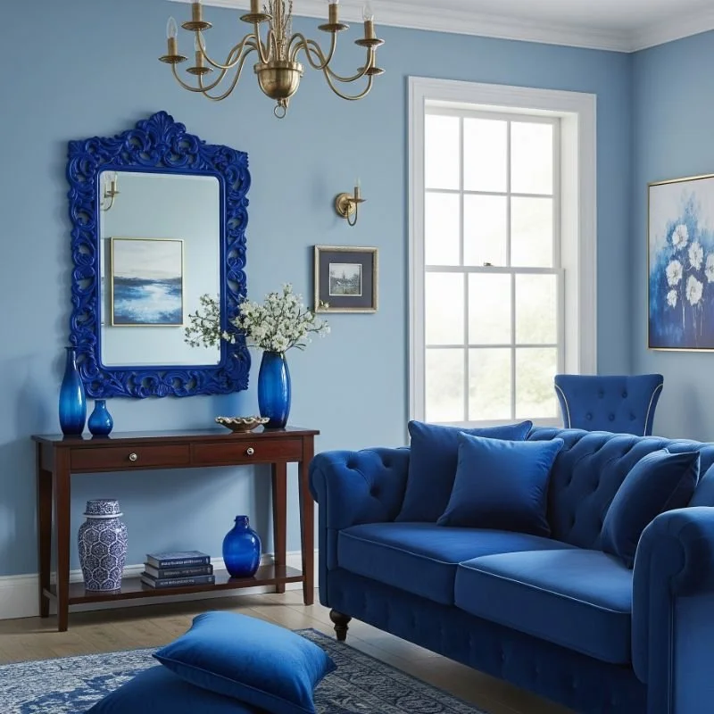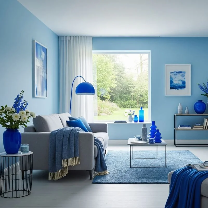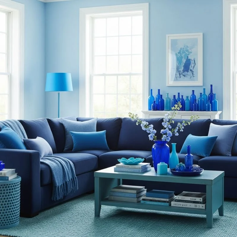 Add vibrant energy to your living room through carefully chosen cobalt blue accessories that provide stunning pops of color without overwhelming your existing design scheme. Cobalt works like scattered sapphires throughout your space, catching light and drawing attention while maintaining the calming benefits of blue's natural properties. Incorporate this energizing shade through throw pillows, vases, artwork, or decorative objects that can be easily changed or moved as your preferences evolve. The intensity of cobalt blue means a little goes a long way, so choose placement strategically to create visual rhythm throughout the room. This bright, clear blue pairs beautifully with white, gray, and natural materials, creating fresh combinations that feel both modern and timeless. Layer different shades of blue for depth, using cobalt as your brightest accent while incorporating softer blues in larger elements for balanced, sophisticated color stories.