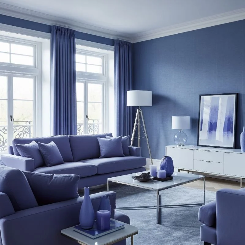 Explore the sophisticated beauty of periwinkle, a unique purple-blue hybrid that adds unexpected elegance and calming energy to your living room design. This complex color works like a chameleon, appearing more blue in certain lights and more purple in others, creating dynamic interest that changes throughout the day. Periwinkle pairs exceptionally well with soft grays, warm whites, and metallic accents, creating color combinations that feel both fresh and timeless. The lavender undertones add a touch of romance and sophistication that pure blues cannot achieve, making spaces feel more nuanced and personally expressive. Consider incorporating periwinkle through painted walls, upholstered furniture, or statement accessories that showcase this color's unique character. This sophisticated choice transforms ordinary living rooms into extraordinary spaces that demonstrate confident color choices while maintaining the peaceful, calming atmosphere that makes blue living rooms so appealing and restorative.