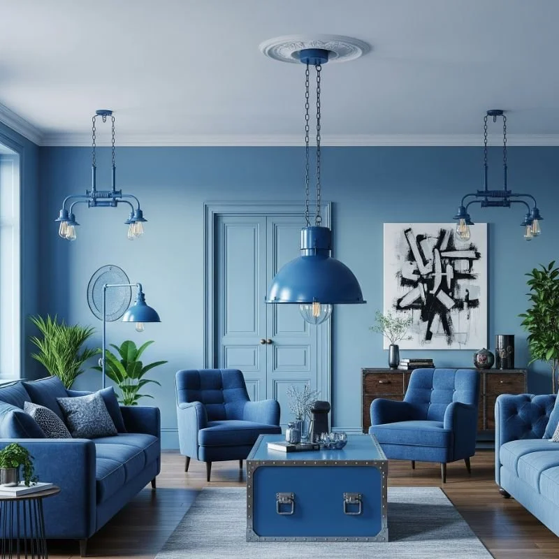 Embrace modern sophistication with steel blue elements that bring industrial chic and contemporary coolness to your living room while maintaining the calming benefits of blue's natural properties. Steel blue works like architectural metal, adding structure and confidence to spaces while remaining surprisingly versatile and livable. This sophisticated shade pairs exceptionally well with concrete textures, exposed metals, and clean geometric lines, creating contemporary combinations that feel both cutting-edge and timeless. The gray undertones prevent steel blue from feeling too casual or beachy, making it perfect for urban spaces that need sophisticated color without sacrificing the peaceful atmosphere that blue naturally provides. Consider incorporating this shade through modern furniture pieces, contemporary artwork, or architectural elements that enhance your room's structural beauty. This refined choice transforms living rooms into sophisticated urban retreats that celebrate contemporary design while maintaining the restorative qualities that make coming home such a pleasure.