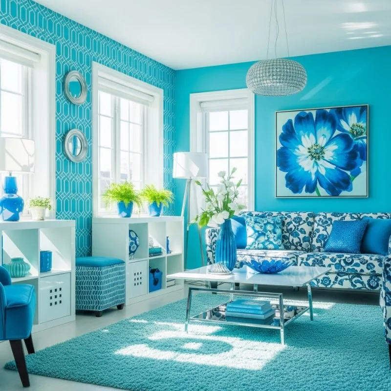 Infuse your living room with fresh, energizing aqua blue that combines the calming properties of blue with the refreshing qualities of green for ultimate rejuvenation. Aqua works like a cool breeze on a warm day, instantly refreshing spaces while maintaining the sophisticated appeal that makes blue such a popular design choice. This vibrant yet peaceful shade pairs beautifully with white, coral, and natural wood tones, creating combinations that feel both tropical and timeless. The key lies in balancing aqua's energy with calming elements, perhaps through natural textures, soft lighting, or gentle patterns that enhance rather than compete with the color's vivacious nature. Consider incorporating aqua through painted accent walls, statement furniture pieces, or collections of accessories that create cohesive color stories. This refreshing choice transforms living rooms into energizing retreats that promote both relaxation and inspiration, perfect for spaces that need to feel both peaceful and motivating.