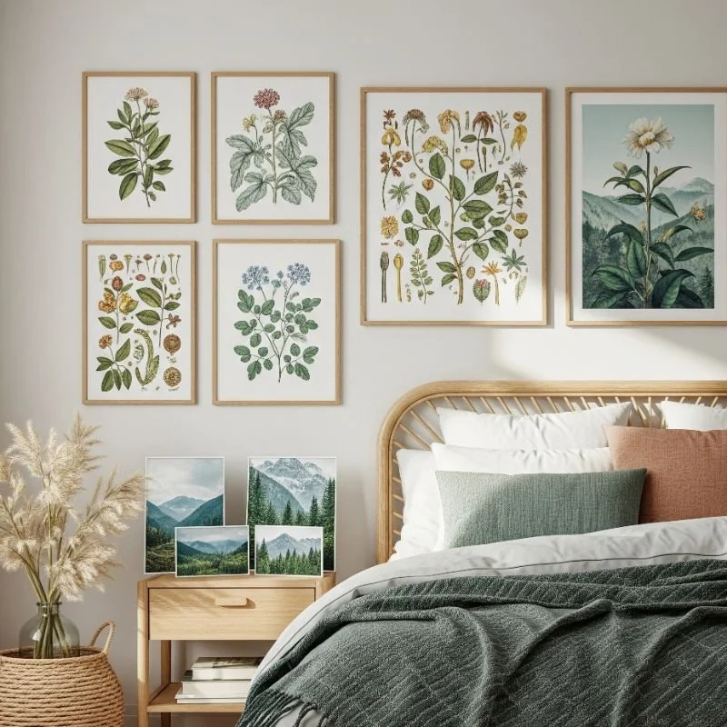 Transform your walls into galleries celebrating botanical beauty through carefully curated collections of plant photography, vintage botanical illustrations, and contemporary nature-inspired artwork. Vintage botanical prints bring scientific precision and old-world charm, while modern photography captures plants in their natural habitats with stunning detail. Create gallery walls mixing different artistic styles and sizes, ensuring each piece contributes to your overall botanical narrative. Choose frames in natural materials like wood or bamboo to maintain your theme's authenticity. Consider featuring plants you're growing in your bedroom, creating connections between your living specimens and artistic representations. Seasonal rotation keeps your gallery fresh while highlighting different aspects of botanical beauty throughout the year. These artistic elements provide botanical interest in areas where live plants might not thrive while adding personal touches that reflect your individual taste and connection to nature.