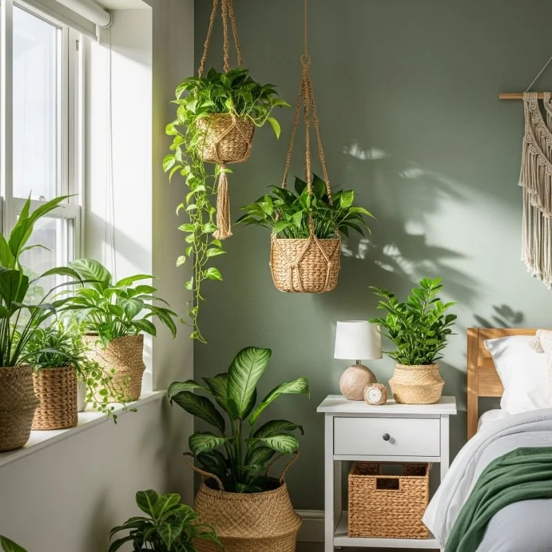Organize your botanical bedroom using beautiful woven baskets that serve dual purposes as functional storage and natural decorative elements that complement your plant-filled space. Baskets made from natural materials like seagrass, rattan, or bamboo provide texture and visual interest while hiding necessary items like extra linens, plant care supplies, or seasonal decorations. Use varying sizes and weaving patterns to create visual rhythm throughout your space, ensuring each basket contributes to rather than detracts from your overall design. Large floor baskets work perfectly as plant stands for statement specimens, while smaller versions organize bedside essentials or display air plant collections. The natural materials age beautifully and develop character over time, aligning with botanical themes of growth and change. Consider supporting artisans who use traditional weaving techniques, adding cultural stories to your space while maintaining sustainable practices that honor natural resources.