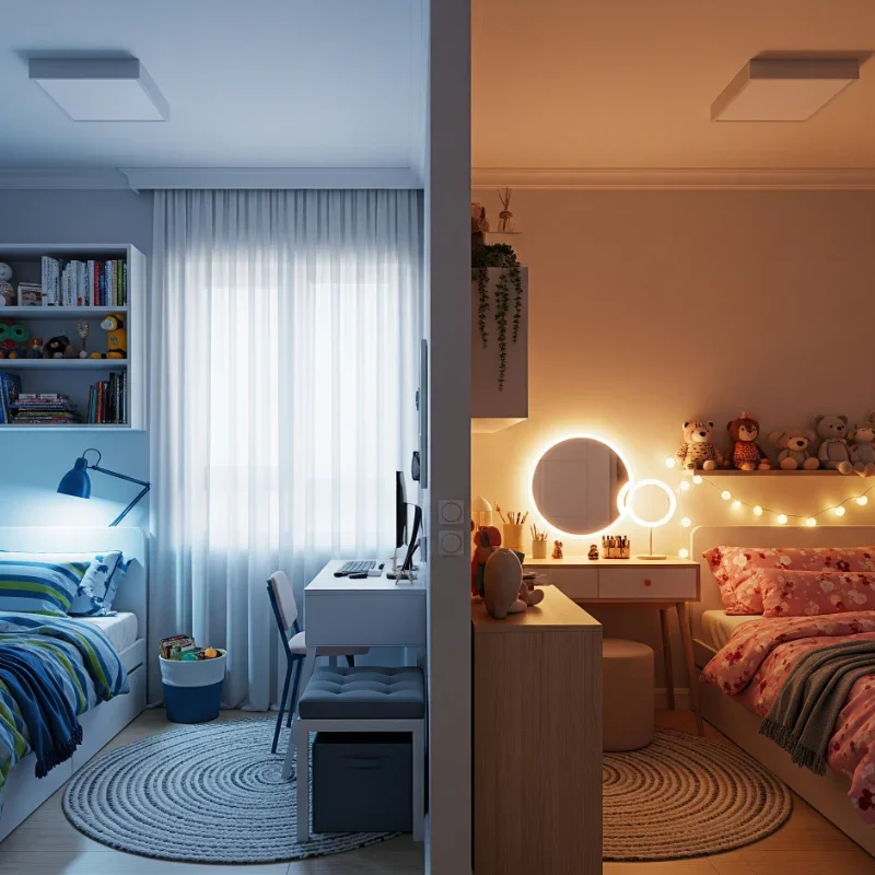 Illuminate individual needs without disturbing roommates! Each bed needs its own reading light: clip-on, wall-mounted, or bedside lamps. Dimmer switches on overhead lighting accommodate different sleep schedules. Night lights provide security without disrupting sleep. Consider smart bulbs that change colors for different moods or activities. Blackout curtains help early risers avoid waking night owls. Task lighting at desks prevents eye strain during homework. String lights add ambiance without harsh brightness. Battery-operated options eliminate cord conflicts. Position lights to avoid shining in siblings' eyes. Include a sunrise alarm clock for gentle wake-ups. This layered lighting approach respects different rhythms and activities. Your lighting plan keeps peace during those tricky bedtime transitions!