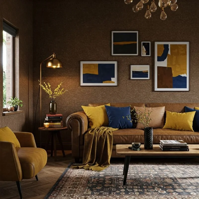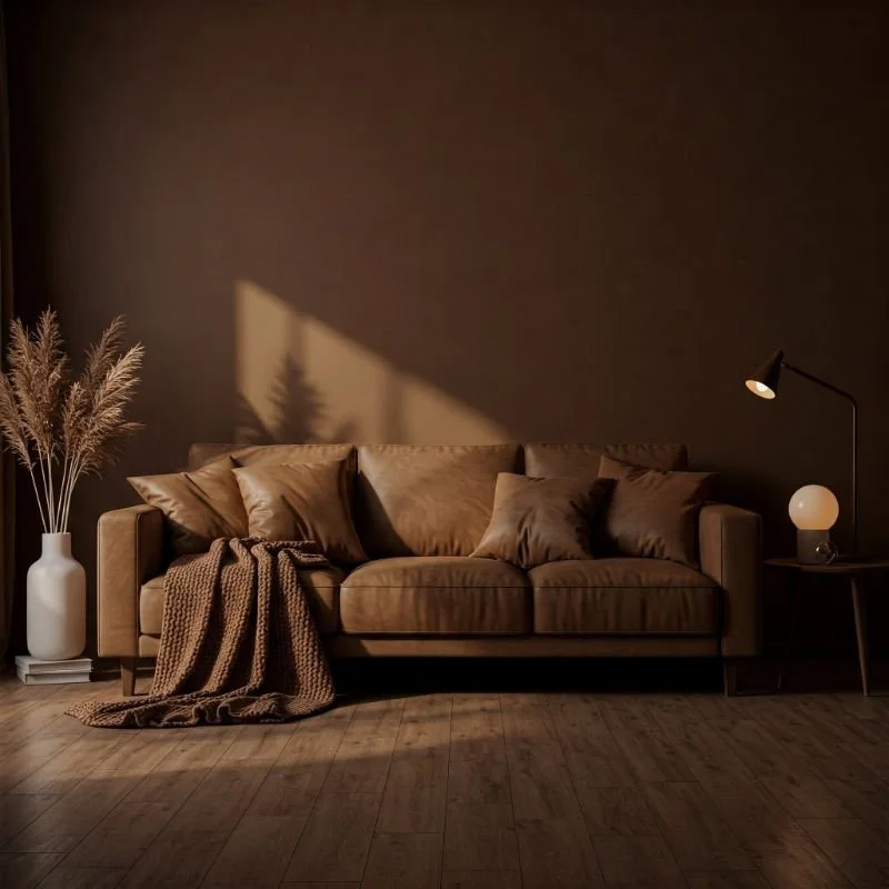 Start with neutral browns like beige, taupe, or warm caramel for walls and larger furniture. Add deeper shades like chocolate or chestnut for accent pieces and smaller decor elements.