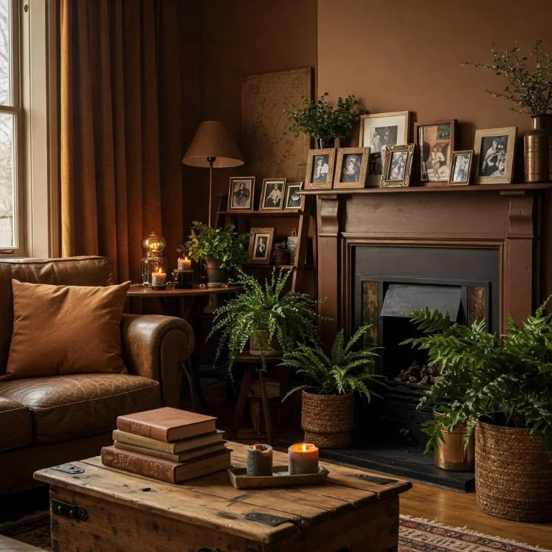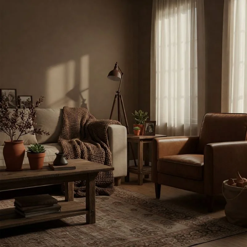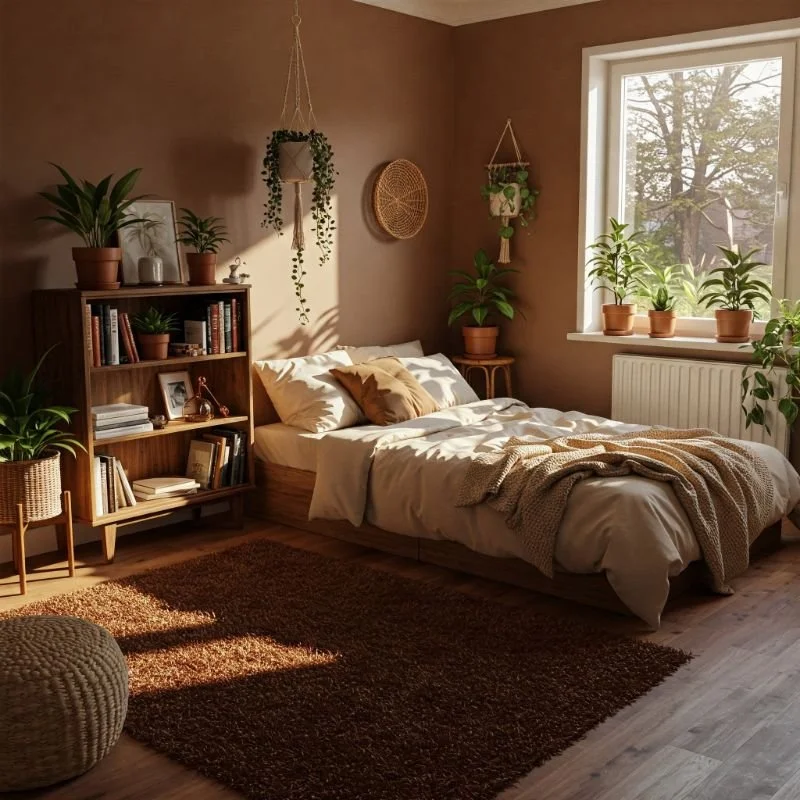 A brown aesthetic room focuses on warm, earthy tones of brown paired with natural elements like wood, leather, and textiles. It creates a cozy, inviting, and grounded atmosphere.