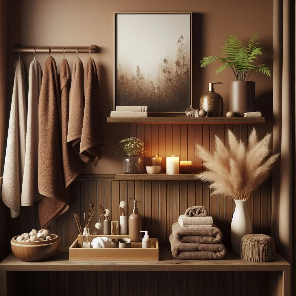 Natural materials like wood, stone, and wicker complement brown tones beautifully and add texture and warmth to your bathroom decor.