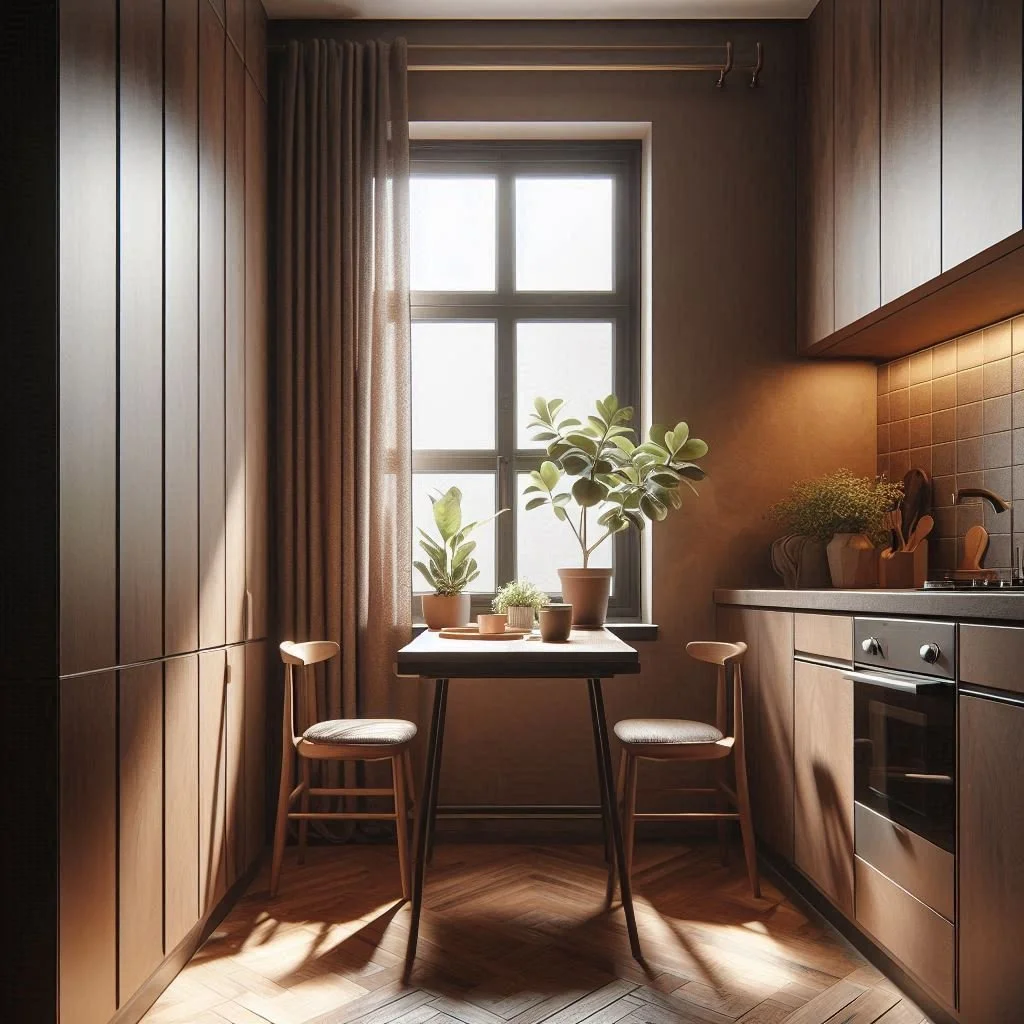 Create a cozy nook in your kitchen using brown tones and comfortable seating to add charm and functionality. A built-in bench with soft cushions provides a welcoming spot, while a small table offers space for casual meals and gatherings. Warm lighting enhances the inviting atmosphere, making the nook perfect for relaxing or socializing. The brown tones of the bench and table blend seamlessly with the rest of the kitchen, creating a harmonious look. This cozy nook not only adds a charming focal point but also maximizes space, making your kitchen more versatile and user-friendly. It's an ideal way to combine comfort and style, enhancing the overall ambiance of your kitchen.