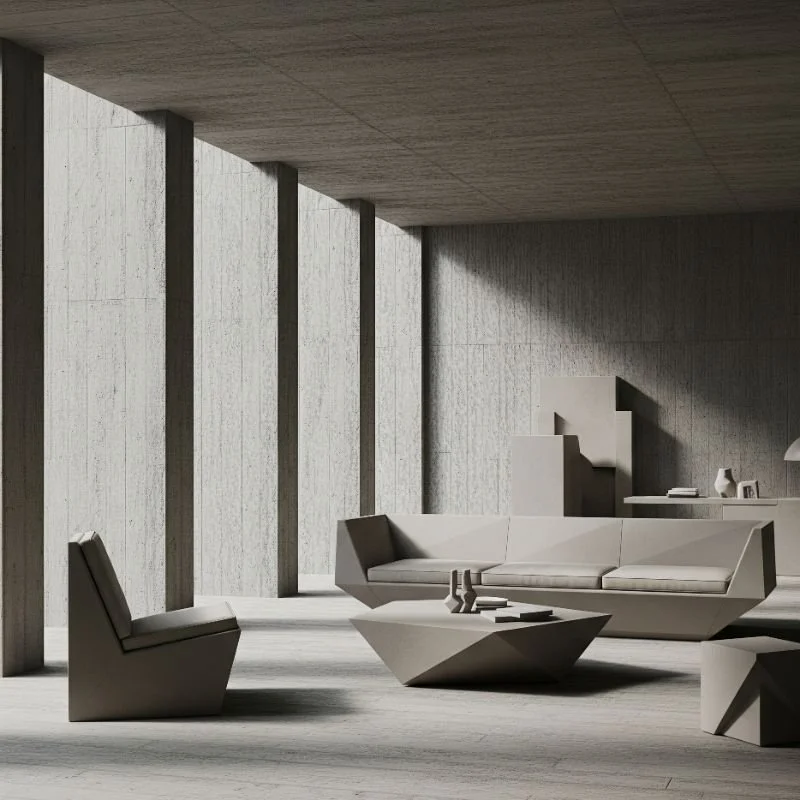 Embrace the power of monolithic furniture pieces that look carved from single blocks of material. Think massive concrete coffee tables, geometric wooden benches, or angular metal chairs that make bold statements. These pieces aren't just furniture; they're functional sculptures that define your space. It's like living with museum-quality art you can actually use! Choose pieces with clean lines and minimal ornamentation to maintain brutalist integrity. The weight and presence of these items anchor rooms and create focal points. Mix materials like concrete, wood, and metal for visual interest while maintaining the geometric theme. Scale matters here, so ensure pieces fit your space without overwhelming it.