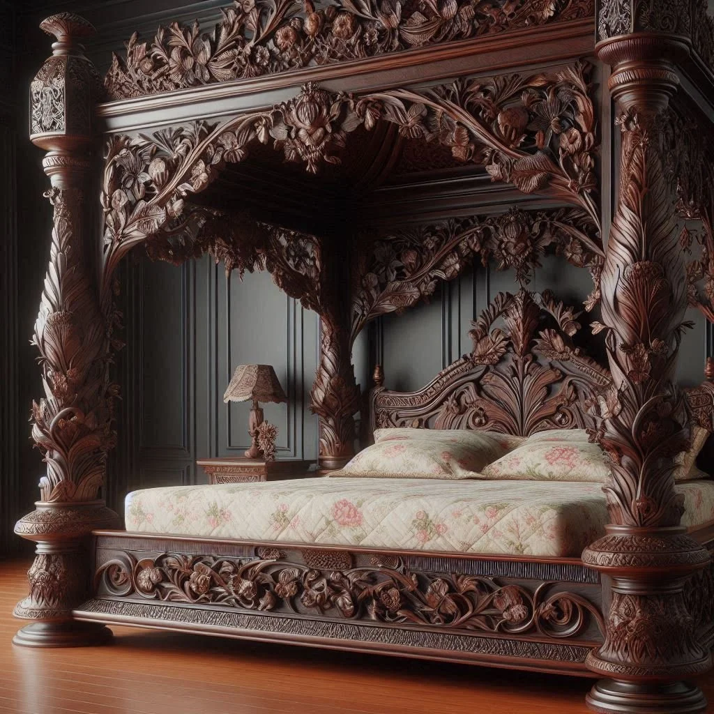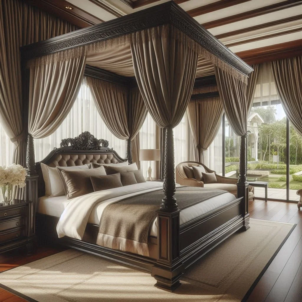 For those who appreciate tradition, a classic four-poster canopy bed exudes elegance and sophistication. This timeless design features tall, sturdy wood or metal posts that rise gracefully above the bed, often adorned with luxurious fabrics like velvet or silk. As the room’s centerpiece, a four-poster bed creates a stately presence, instantly elevating the bedroom’s overall aesthetic. Its commanding style adds a touch of luxury and refinement, perfect for those seeking a blend of traditional charm and opulence. The grandeur of the four-poster bed not only enhances the room's decor but also offers a classic, sophisticated ambiance that transforms your bedroom into a refined retreat. Its enduring design ensures it remains a focal point, embodying both historical charm and contemporary elegance.