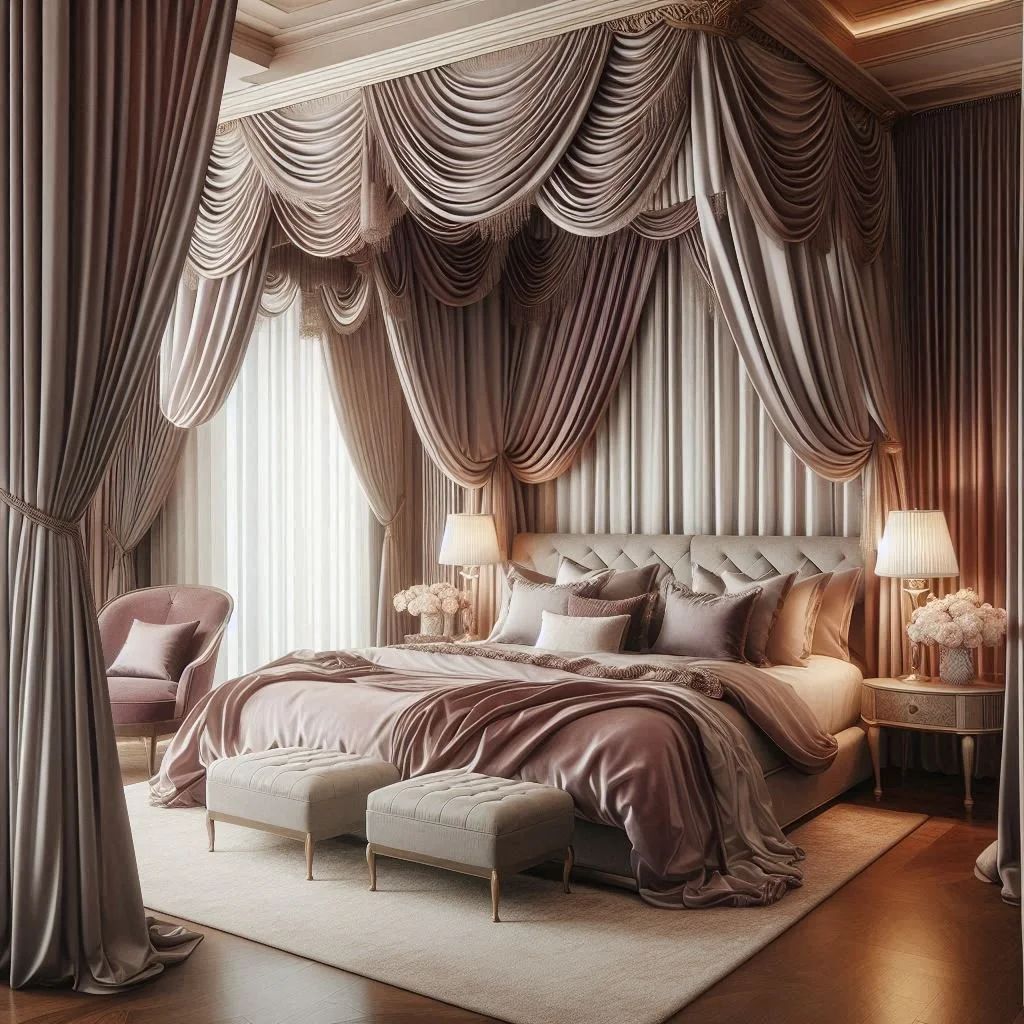 Nothing exudes luxury like layers of rich fabric cascading from your canopy bed’s frame. Draped canopy beds create a cozy, glamorous atmosphere, offering both intimacy and sophistication. Choose luxurious fabrics like velvet or silk to enhance the opulence of your bedroom. To complete the high-end look, complement your draped canopy bed with a plush rug, elegant bedside tables, and soft, ambient lighting. The mix of textures and luxurious fabrics transforms your space into a serene retreat, perfect for unwinding in style. This combination of rich materials and thoughtful design details creates a sophisticated haven, making your bedroom feel like a luxurious escape. Whether you're lounging or relaxing, the draped canopy bed adds an extra layer of comfort and elegance to your bedroom decor.