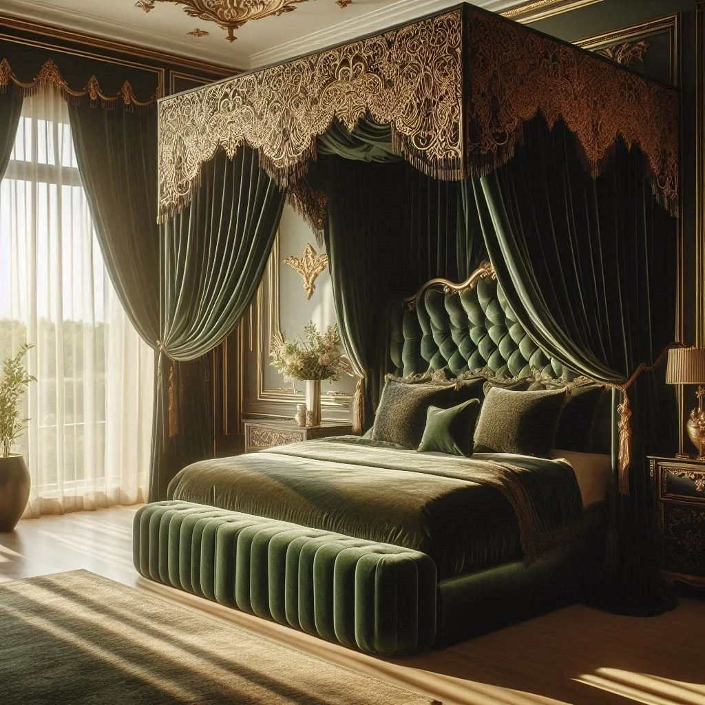 For a luxurious and opulent look, velvet is the ultimate choice. Velvet canopy beds radiate elegance and comfort, turning your bedroom into a cozy, indulgent sanctuary. The rich texture of velvet adds depth and sophistication, making it a striking feature in any space. To enhance this luxurious feel, pair your velvet canopy bed with plush bedding and metallic accents like gold or brass. This combination creates a glamorous, balanced look that is both inviting and refined. The result is a bedroom that exudes luxury, perfect for anyone looking to elevate their space with a touch of elegance and sophistication. Velvet’s sumptuous texture and rich appearance make it an ideal material for achieving a high-end, indulgent atmosphere in your bedroom.