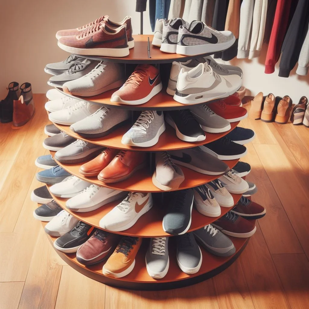 Elevate your shoe organization with the innovation of rotating shoe racks. These space-saving wonders not only showcase your favorite pairs in a visually appealing manner but also make them easily accessible. It's akin to having a personal shoe store right in your closet, where each pair is on display and within reach. The rotating feature maximizes space utilization, allowing you to efficiently store and retrieve your shoes without rummaging through crowded shelves. With this stylish and practical addition, your closet transforms into a curated showcase of your footwear collection, making the selection of the perfect pair a delightful and effortless experience.