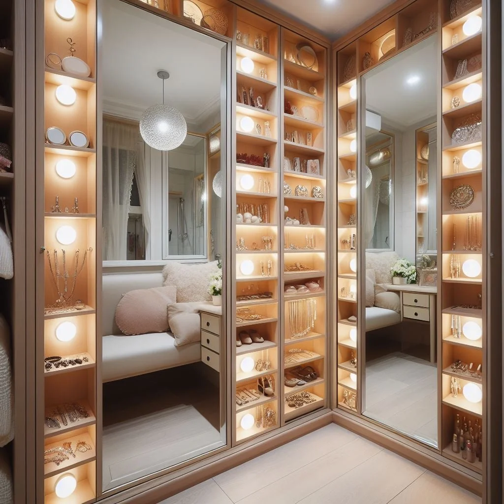 Merge functionality and style seamlessly by incorporating mirrors that double as storage solutions into your living space. These innovative mirrors not only provide a full-length view but also offer hidden compartments for jewelry, accessories, or even small clothing items. By combining the practicality of a mirror with discreet storage, you elevate your space's aesthetic while optimizing its functionality. Say goodbye to cluttered countertops and embrace the dual purpose of these stylish mirrors, transforming them into practical storage units that contribute to both the visual appeal and efficiency of your living area. It's a clever and chic solution for maximizing space in style.