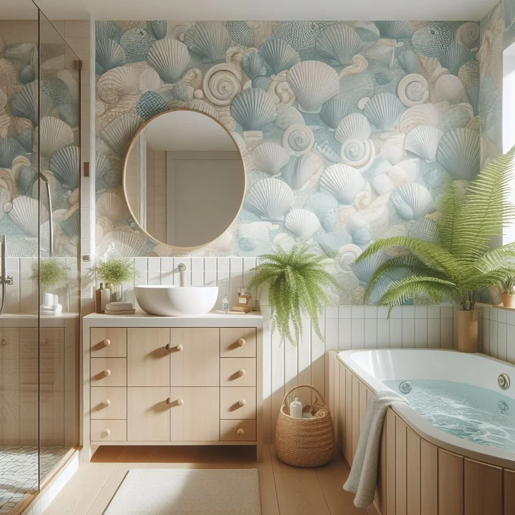 Infuse your bathroom with the serene vibes of the seaside by exploring decor ideas that transform it into a spa-like escape with coastal influences. Begin by selecting a soothing color palette inspired by the ocean, incorporating soft blues, sandy whites, and natural tones reminiscent of beach dunes. Choose textured shower curtains and bath mats that mimic the feel of coastal sands, and complement them with seashell or driftwood-themed accessories. Introduce open shelving to display beach-inspired decor like woven baskets, marine artwork, or coastal-scented candles. Complete the ambiance with touches of greenery, such as potted palms, to evoke the lushness of coastal landscapes. With these elements, your bathroom becomes a tranquil retreat, offering the relaxation of a seaside spa within the comfort of your home.
