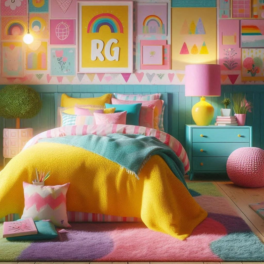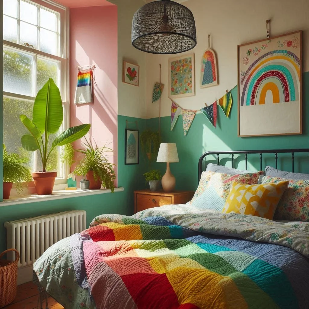 If you’re a maximalist at heart, why not infuse your bedroom with the vibrant energy of a rainbow? Incorporate multi-colored decor elements such as striped pillows, cheerful rainbow artwork, or a bold, colorful headboard to create a lively and dynamic space. These accents bring a playful and joyful vibe that reflects your personality and makes your room feel uniquely yours. The key to making this kaleidoscope of color work is balance—pair these vibrant pieces with neutral furniture and soft, understated walls to ground the design and prevent it from feeling overwhelming. For example, a neutral bed frame or white dresser can act as a subtle backdrop, allowing your rainbow accents to truly shine. By blending colorful decor with muted furnishings, you create a space that’s both energetic and harmonious, embodying the perfect balance of fun and sophistication.