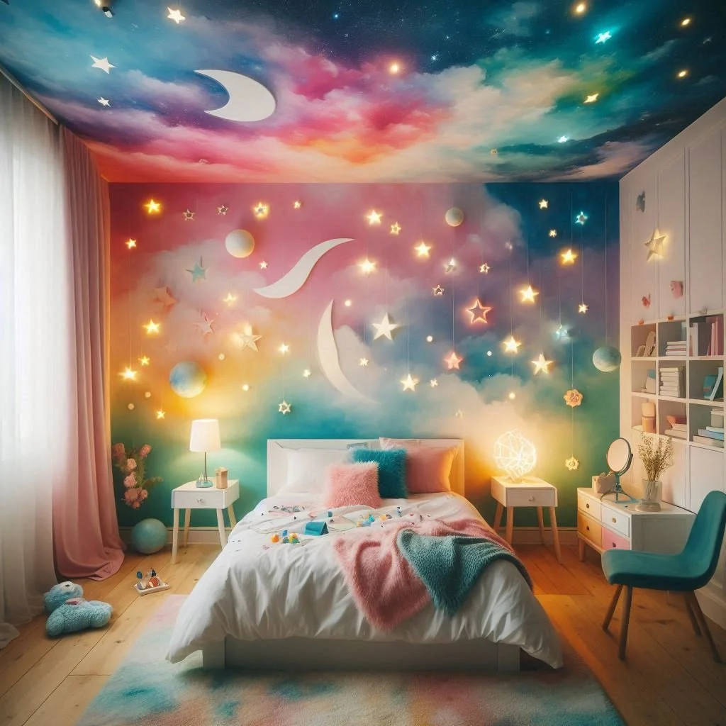 Don’t overlook your ceiling—it’s often referred to as the “fifth wall” for a reason! Adding color to your ceiling is a creative way to bring depth and personality to your bedroom. A sunny yellow ceiling can infuse the space with warmth and cheer, while a deep cobalt blue adds a touch of drama and sophistication. This unexpected pop of color draws the eye upward, creating a sense of height and making the room feel more expansive. To maintain a harmonious balance, pair a bold ceiling color with neutral-toned walls, such as white, beige, or soft gray. This combination ensures the ceiling stands out without overwhelming the space. Whether you go for a vibrant hue or a softer tone, a painted ceiling transforms your bedroom into a dynamic and stylish retreat, showcasing your creativity and unique design vision.