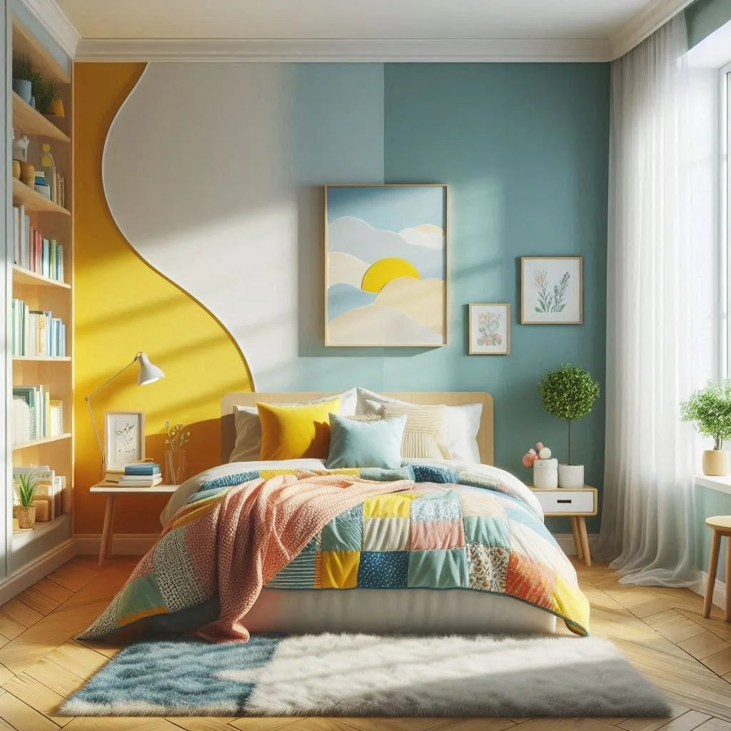 Why stick to just one color when two can create a striking design statement? Two-tone walls are an excellent way to add depth and visual interest to your bedroom. Pairing a bold hue with a neutral, such as mustard yellow and white, offers a vibrant yet balanced look. For a softer, harmonious vibe, consider complementary shades like lavender and blush pink. The contrasting colors not only define the space but also bring energy and personality to your room. To achieve clean, crisp lines between the two shades, use painter’s tape and take your time with the application for a professional finish. Whether you opt for a dramatic color block or a subtler gradient effect, two-tone walls transform your bedroom into a dynamic and engaging retreat, making the space feel stylish and uniquely yours.