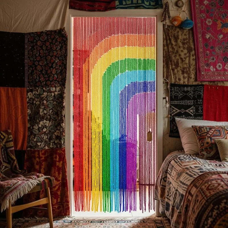 12. Rainbow Bead Curtains: Retro Dividers and Doorways