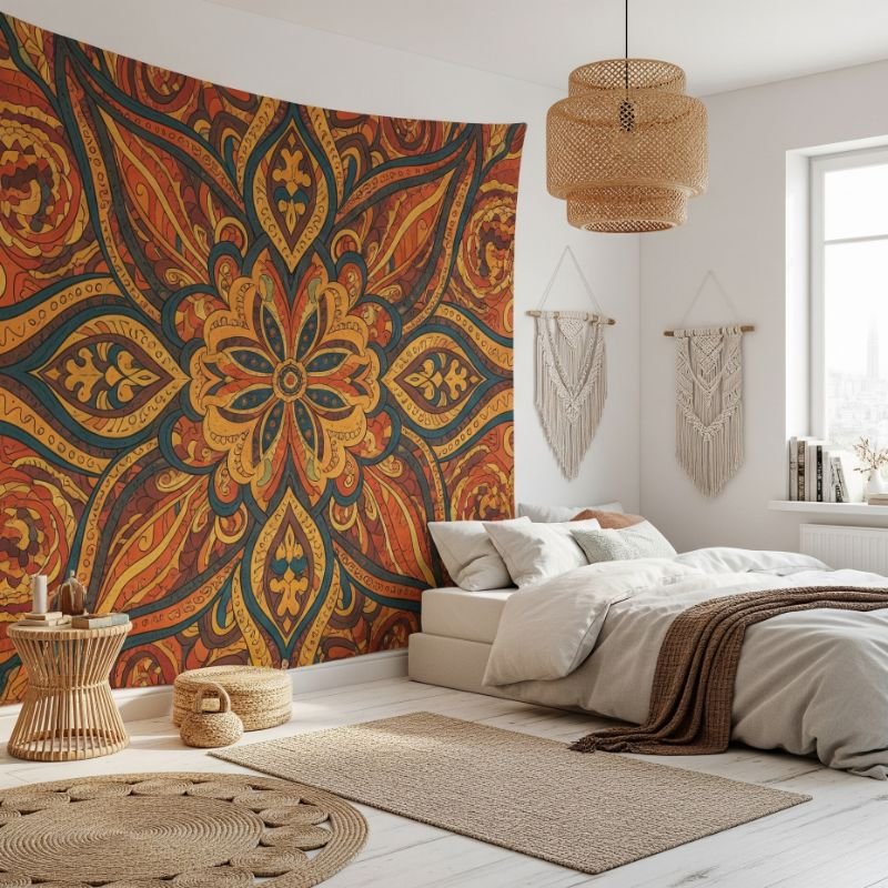 2. Statement Wall Tapestries: Bold Patterns as Focal Points