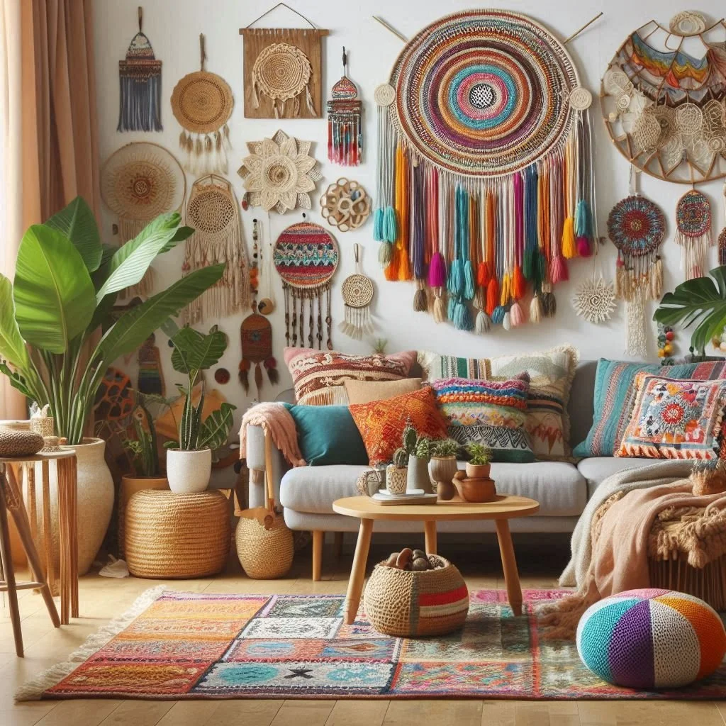 Handmade elements are essential to achieving the authentic Boho style, infusing your space with unique character and craftsmanship. Macrame wall hangings or plant holders add a touch of artisanal artistry and texture to your decor. Opt for knitted throws or handwoven blankets to introduce warmth and layered comfort to your living room. Hand-painted decor items, such as vases or picture frames, bring a personal touch and serve as charming conversation pieces. These handcrafted elements not only enrich your space with individuality but also celebrate the creativity and tradition behind each piece, making your Boho living room truly one-of-a-kind.