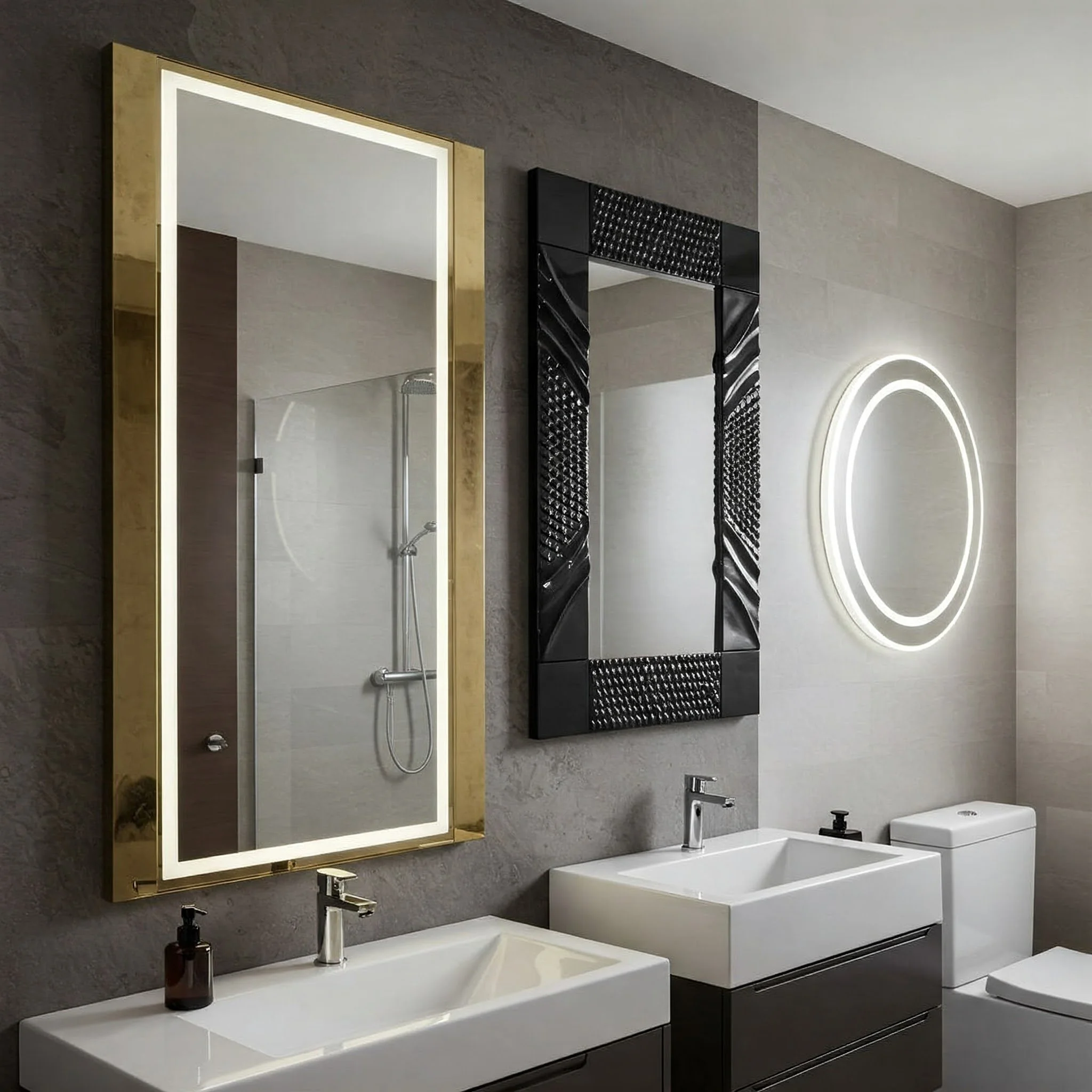 For instance, circular mirrors can soften the hard lines of a room dominated by rectangular shapes. Or go bold with an oversized mirror that spans the entire width of the vanity. Multiple smaller mirrors can also create an eclectic yet harmonious vibe—just ensure they follow the same design language and color scheme to avoid looking disjointed.