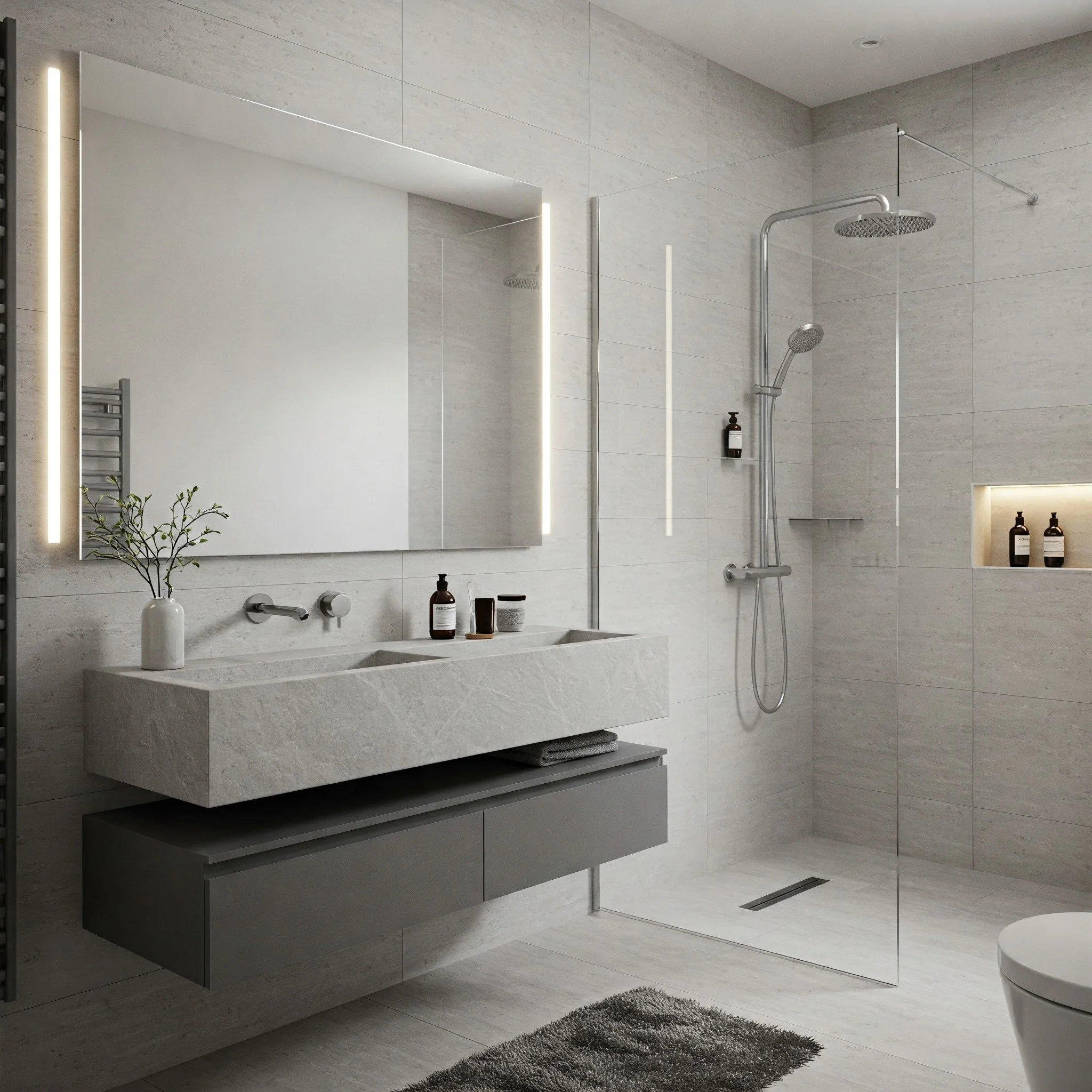 One hallmark of contemporary style is keeping clutter out of sight. Easier said than done, right? The solution lies in smart storage. Think about floating shelves that blend seamlessly with the wall color, or recessed niches built into the shower wall to house shampoo bottles.