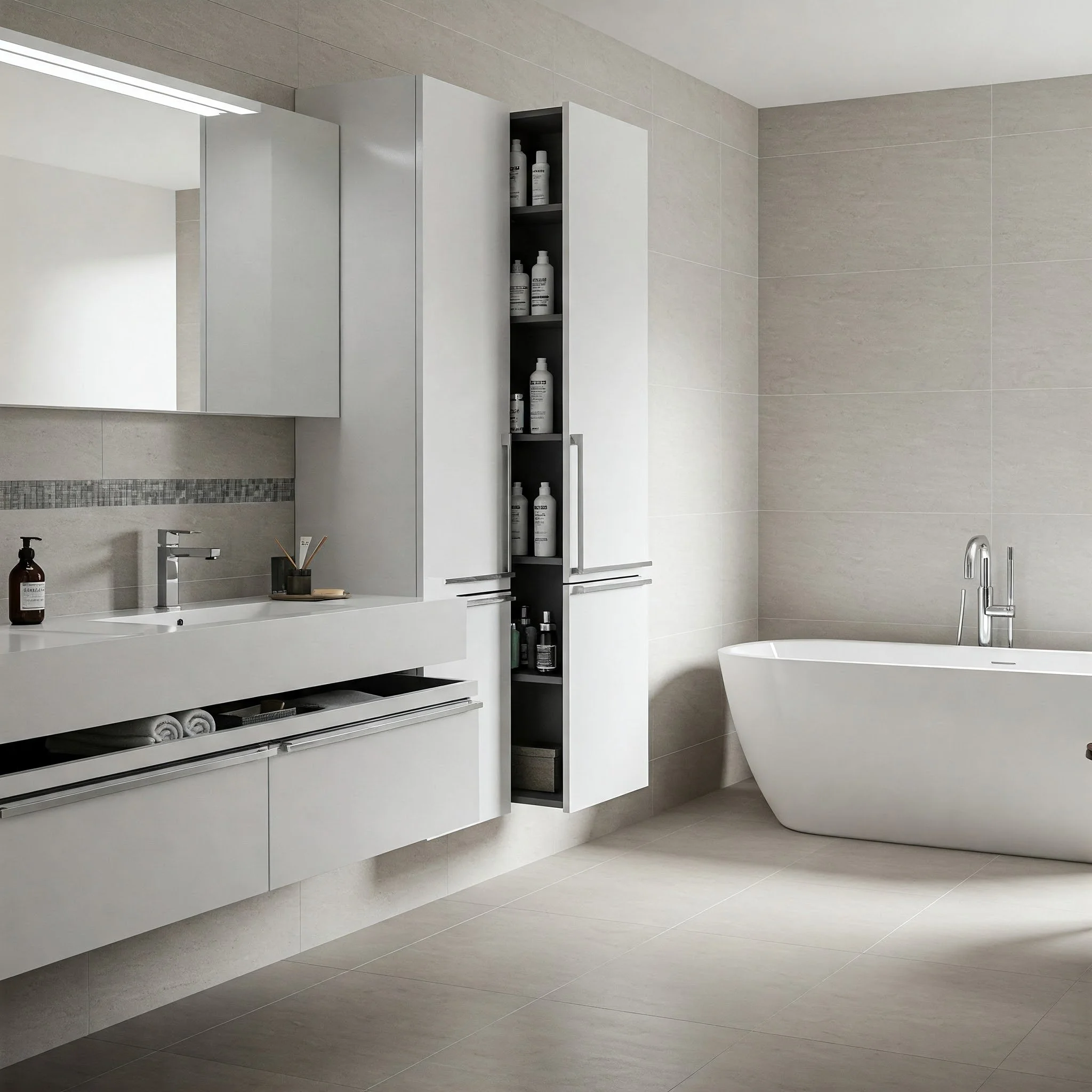 Accessories like towel racks, soap dispensers, and toothbrush holders should align with your chosen metallic finish or color palette. Keep it cohesive: if you’re rocking a brushed nickel faucet, your towel bar and robe hooks should ideally match. You can also place small items—like a scented candle or a minimalistic diffuser—to create that spa-like ambiance. The goal is to keep everything purposeful and curated, ensuring your sleek bathroom design remains the star of the show.