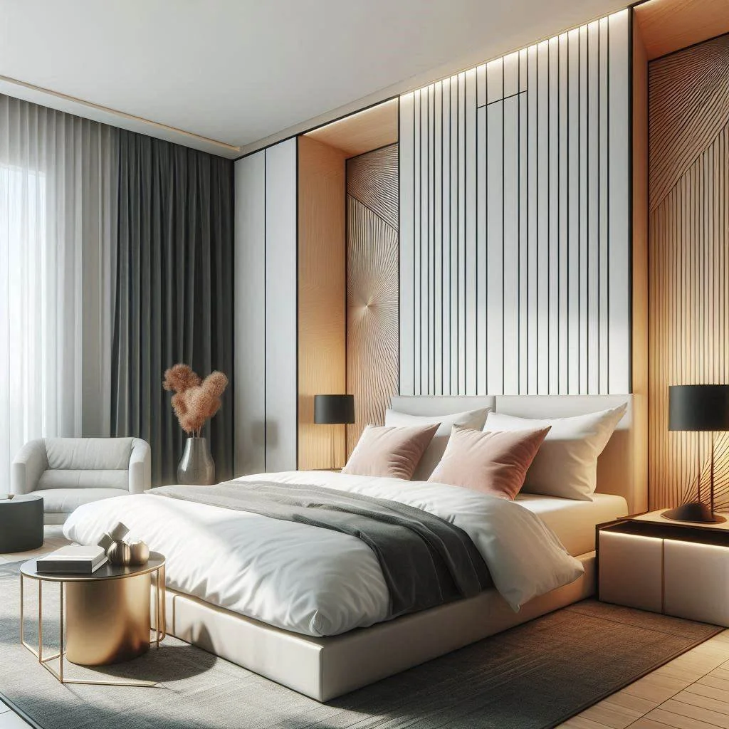 Luxurious bedding and textiles are key to creating a comfortable and inviting contemporary bedroom. Opt for high-quality fabrics like Egyptian cotton, linen, and silk to infuse a touch of elegance and sophistication into your space. Layering different textures, such as a plush duvet, soft throw blankets, and decorative pillows, not only enhances comfort but also adds visual interest to the bed. Select bedding in neutral tones or subtle patterns to seamlessly blend with the contemporary design of your room. These elements contribute to a refined and cozy atmosphere, making your bedroom a serene retreat.