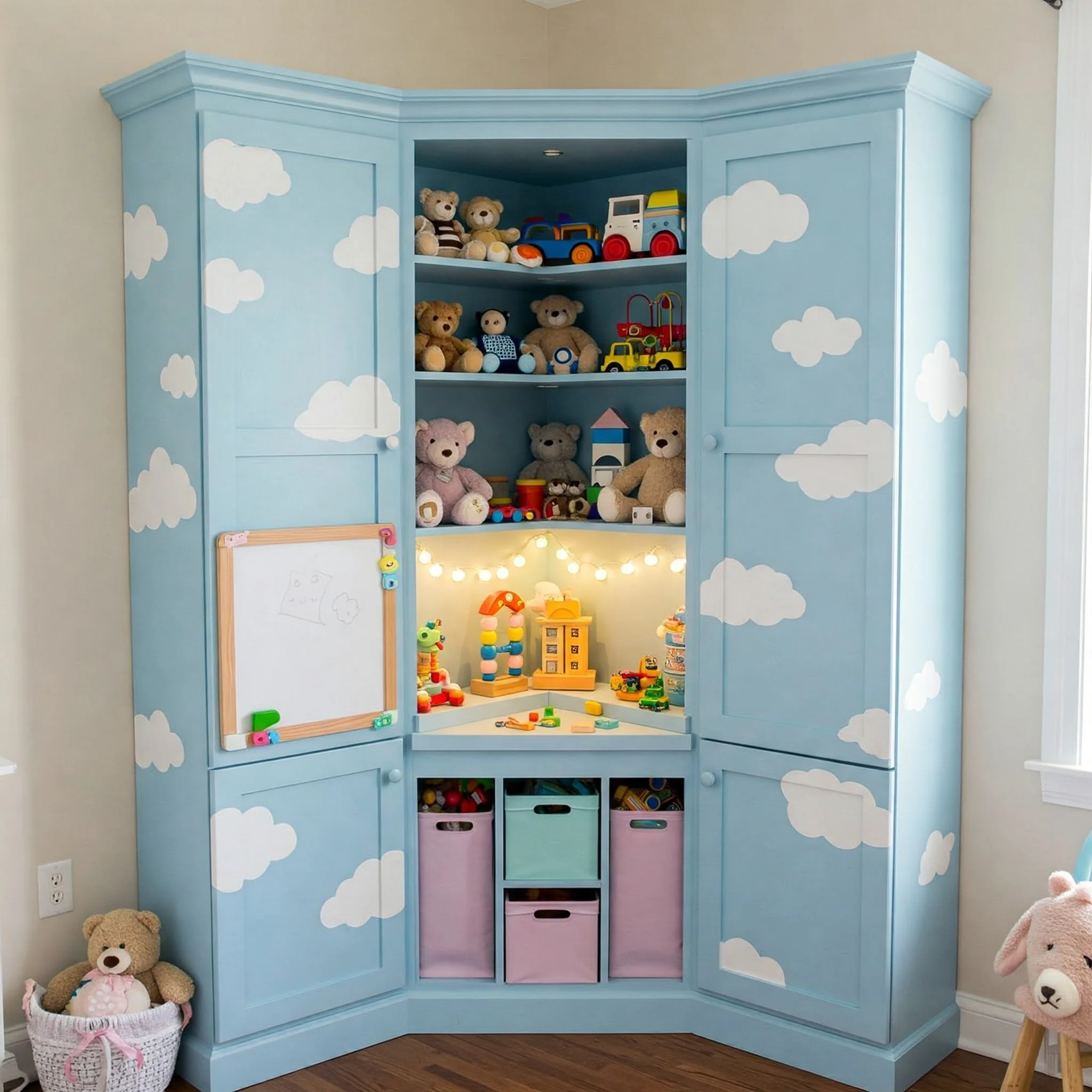 If you’re a parent, you know how quickly toys can take over every corner of the house—so why not dedicate one particularly tricky corner to a kid-friendly storage station? Picture a colorful cabinet or shelf unit that invites children to tuck away their building blocks, art supplies, or favorite stuffed animals. Think of it as a mini theme park for their imagination, nestled neatly in an out-of-the-way space. Soft-closing doors and rounded edges can keep tiny fingers safe, while labeled bins or baskets make cleanup easier—teaching organization skills along the way. You can even add chalkboard panels for doodling, turning the corner into a creative hub rather than a clutter magnet. By corralling the chaos into a dedicated station, you’ll maintain a sense of order in shared living areas without stifling your child’s sense of play.