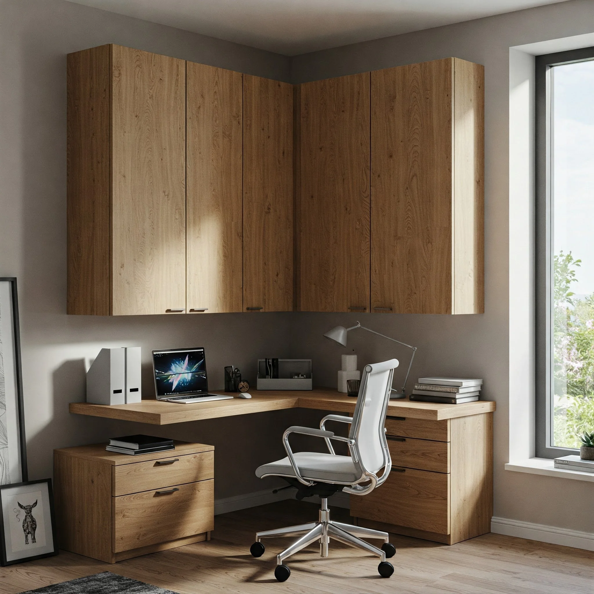 Home offices often start as an afterthought—maybe you squeezed a desk against a lonely wall or repurposed a corner of your dining area. Why not make that workspace shine with a built-in office corner cabinet? Imagine tiered shelves for files, cubbies for stationery, and even a pull-out section for your printer—all neatly tucked into what was once an underutilized angle. This approach allows you to keep your workspace organized, from color-coded folders to inspirational knick-knacks, without overshadowing the rest of the room. It’s like giving your workflow a comfortable, efficient nest. With the right design, you can incorporate a sleek floating desk or even foldable options that vanish when not in use. Whether you’re a full-time remote worker or just need a quiet spot to pay bills, corner office cabinets streamline tasks and save valuable floor space.