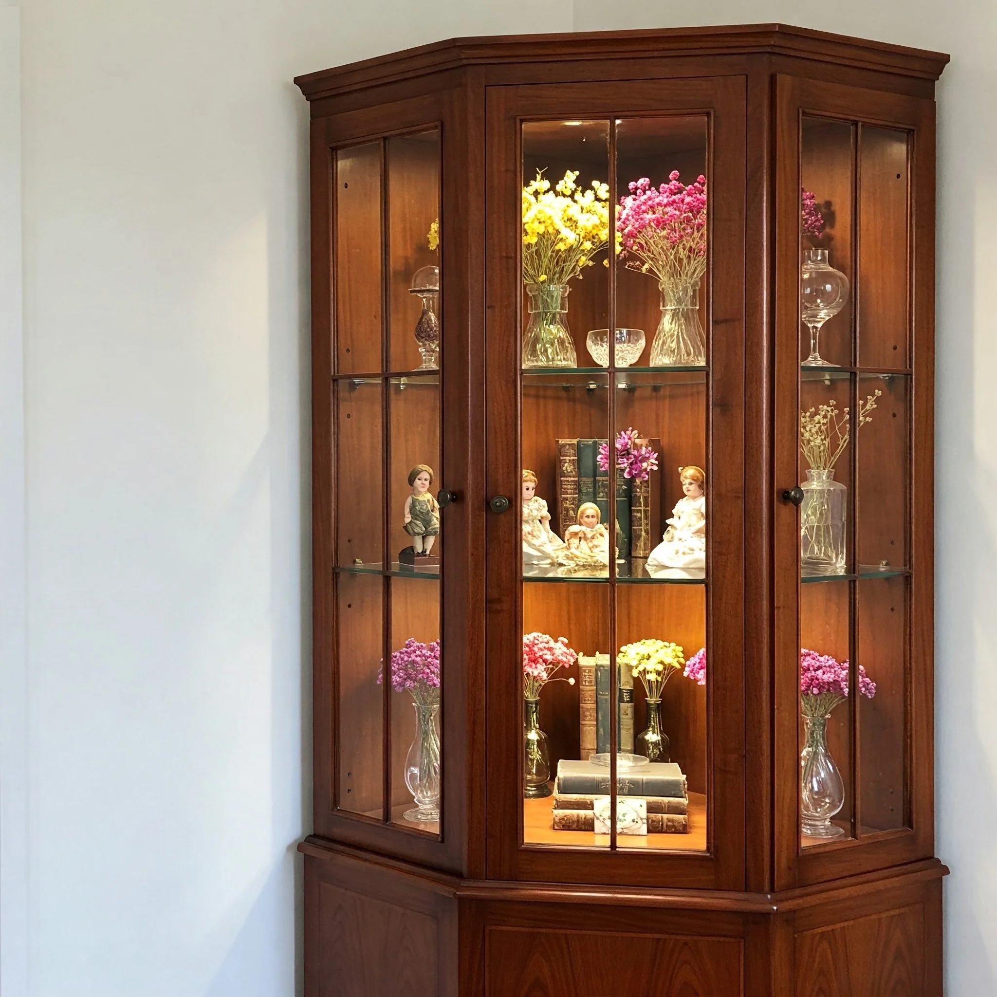 If you want to elevate both style and storage, consider a glass-front corner cabinet that flaunts your belongings while keeping them protected. Think of it like a boutique display for your dinnerware, barware, or prized antiques. The transparency of the doors invites natural light to dance among your items, giving them an almost ethereal glow. A few LED strips inside can amplify that effect in the evening, turning the cabinet into a subtle spectacle. Beyond aesthetics, glass-front cabinets encourage you to keep the contents tidy—nobody wants to see chaos behind a crystal-clear door. And if you’re concerned about privacy for certain items, you can always mix in frosted or etched glass panels. Whether you’re showcasing fine china or a modern art collection, glass-front corner cabinets blend sophistication with practicality in one stunning package.
