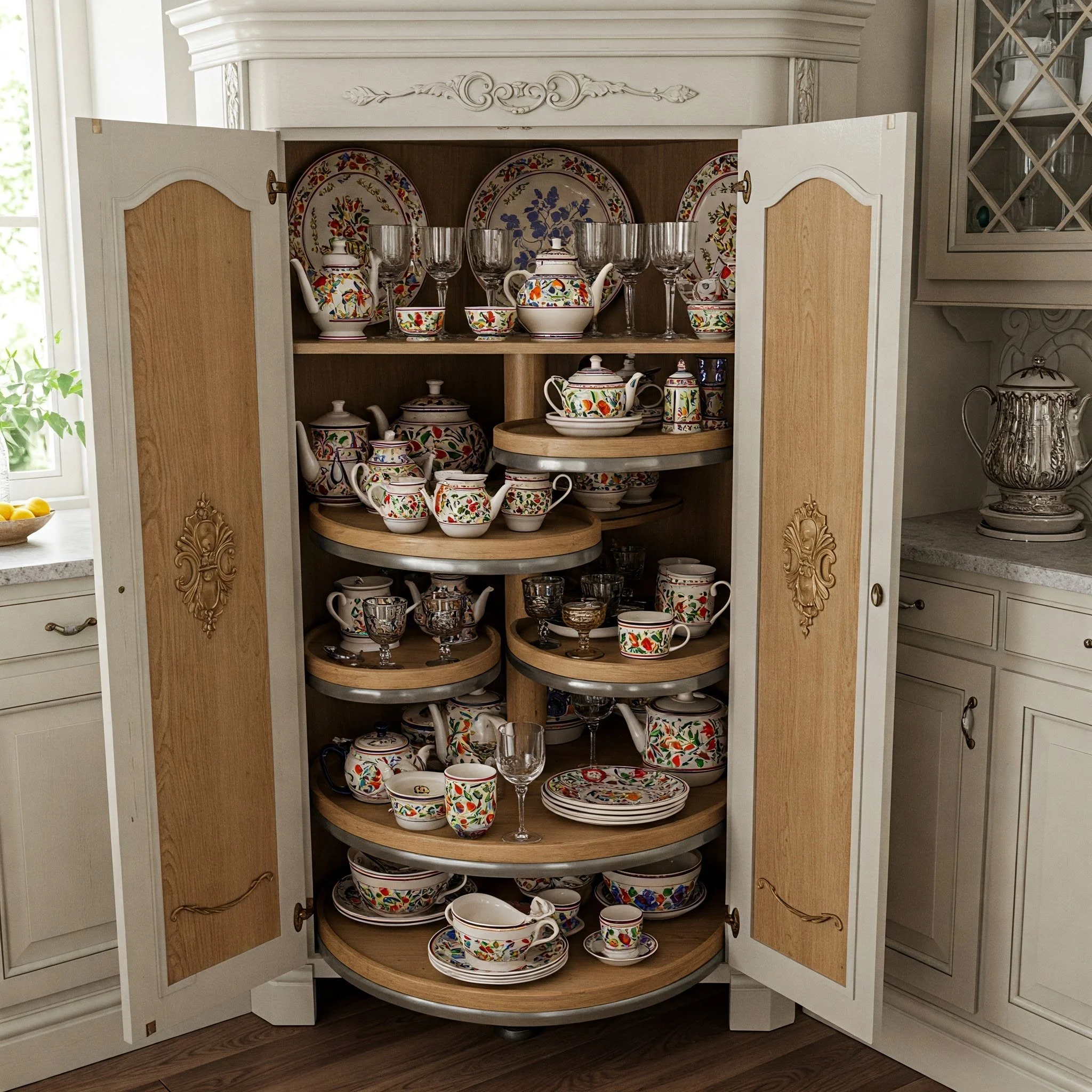 Who says corner cabinets are just for pots, pans, or pantry staples? If you’re a décor lover, consider a corner display cabinet that showcases cherished collectibles, family heirlooms, or that vintage teapot collection. Think of it as turning a lonely corner into a mini gallery—complete with built-in lighting to spotlight each item. Whether you prefer an open-shelf concept or a glass-front design that elevates the sense of elegance, a display cabinet can strike a balance between practicality and aesthetic appeal. Play around with different shelf heights to accommodate tall vases or sculptural pieces. And if you’re short on space, a corner unit with mirrored backing can visually expand the area. By melding storage and style, you’ll not only declutter but also create a focal point that sparks conversation every time someone walks in.