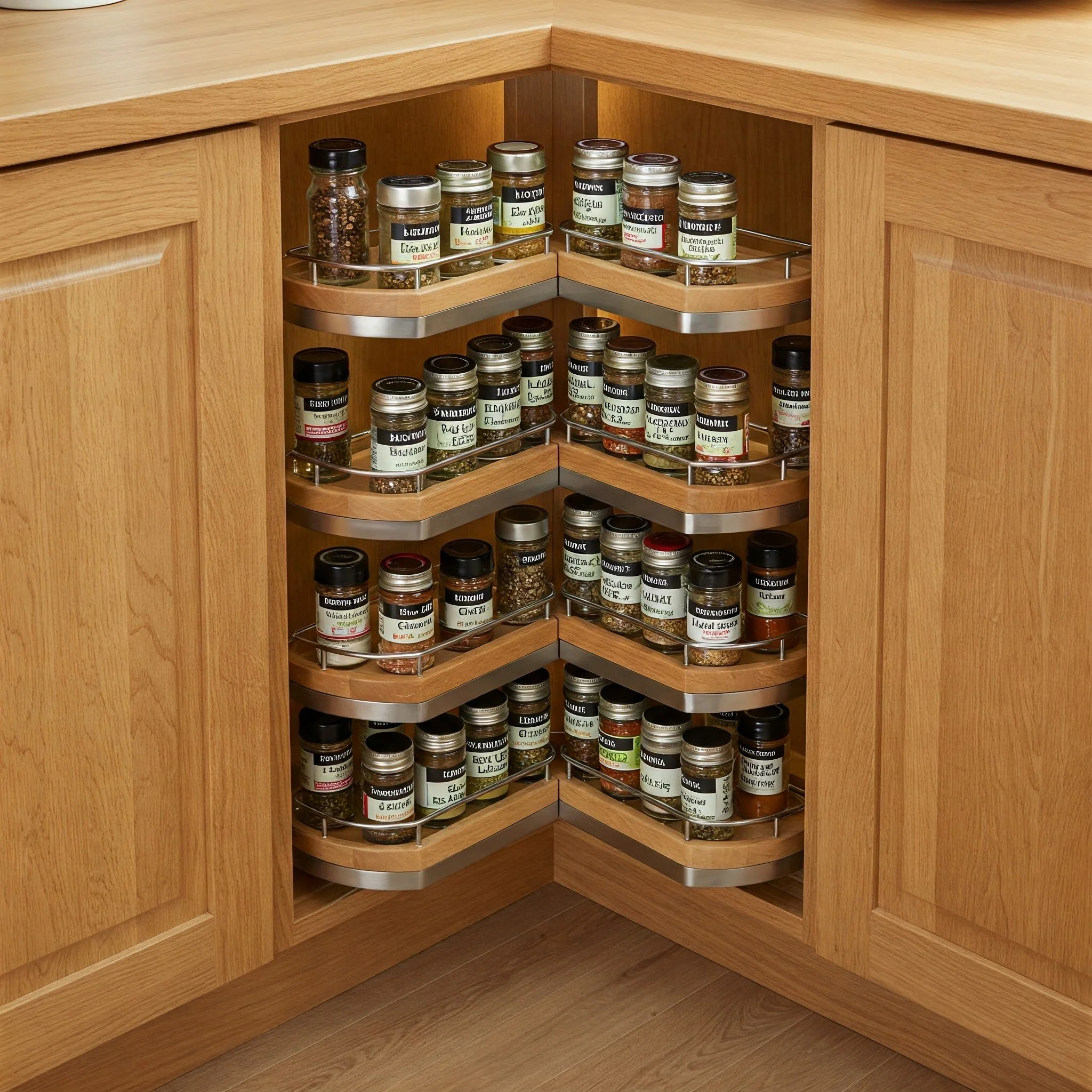 Tired of rummaging through piles of spice jars only to discover you’re out of cinnamon at the worst possible moment? A rotating spice rack in a corner cabinet could be your saving grace. Much like a mini lazy Susan, this setup places all your seasonings in a circular, tiered arrangement that spins for instant access. Talk about adding some spice to your life—literally! Because the rack fits snugly into a corner, you’re effectively expanding your cabinet’s capacity without robbing another shelf of prime real estate. Go for multiple tiers if you’re a culinary experimenter with an ever-growing spice collection. And if you’re feeling extra organized, label the tops or edges of each jar so you can spot what you need at a glance. This simple addition can streamline mealtime prep and keep your kitchen looking Pinterest-perfect.