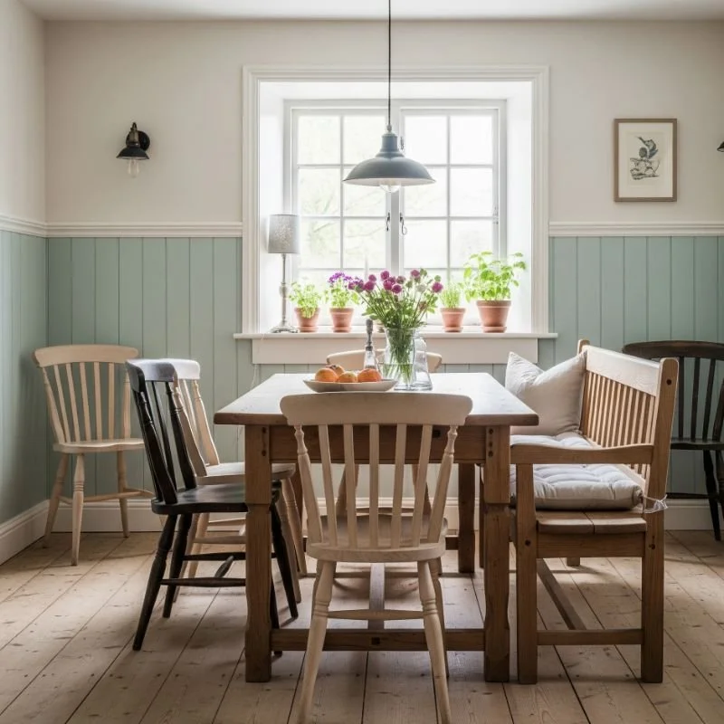 7. Country-Style Dining Room with Mixed Seating