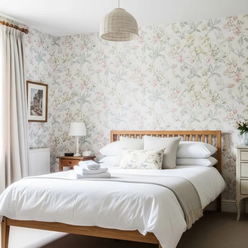 3. Romantic Bedroom with Floral Wallpaper