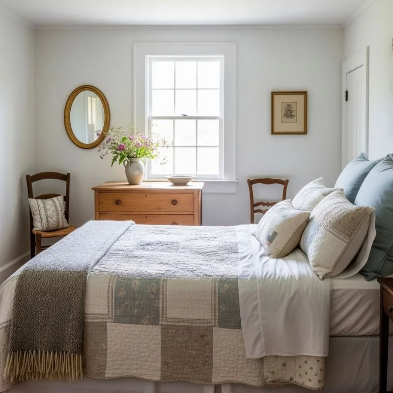 Create a guest room so inviting your visitors won't want to leave. Start with a comfortable bed dressed in layers: crisp sheets, a light quilt, cozy blanket, and plenty of pillows in varying sizes. Mix patterns thoughtfully, combining florals with stripes or checks in a cohesive color palette. Add a vintage nightstand with fresh flowers, water carafe, and good reading light. Include a comfortable chair for putting on shoes or reading. Provide extra blankets in a basket, hang vintage botanical prints, and ensure window treatments offer both light and privacy. Your guest room should feel like a bed and breakfast, minus the awkward breakfast conversation.