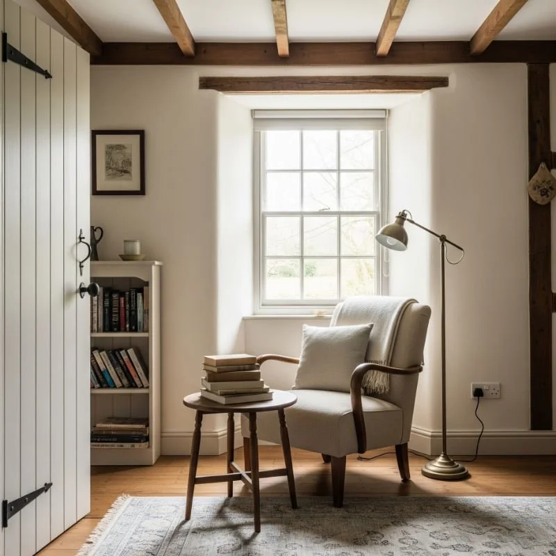 Every cottage home needs a special spot for curling up with a good book and cup of tea. Transform any window area into a reading paradise by adding a comfortable chair or building a window seat with hidden storage. Layer with plump cushions and soft throws in complementary patterns. Position a small side table within reach for your teacup and reading glasses. Add a vintage floor lamp or install a swing-arm sconce for perfect reading light. Surround yourself with beloved books on floating shelves or in a small bookcase. This nook should feel like your personal escape, where time slows down and worries melt away.