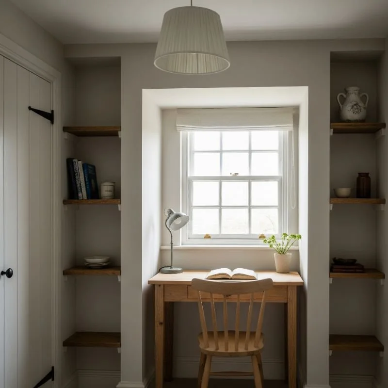 Who says working from home can't feel charming? Transform your office into a cottage-inspired workspace that sparks creativity. Install built-in shelving painted in soft white or pale blue, mixing books with decorative objects. Choose a vintage wooden desk or paint an existing one in a cottage-appropriate color. Add a comfortable upholstered chair that wouldn't look out of place in a living room. Display inspiration on a fabric-covered bulletin board, store supplies in pretty baskets, and add personal touches like family photos in vintage frames. Include good task lighting and fresh flowers. Your office should feel less corporate cubicle, more creative cottage retreat.