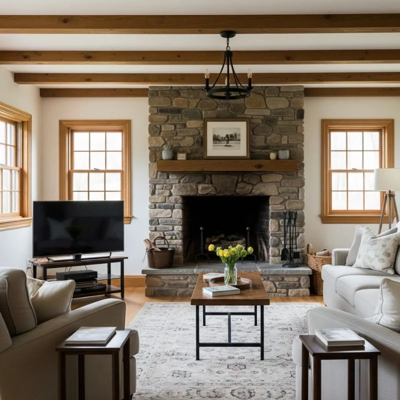 2. Cozy Living Room with Exposed Beams