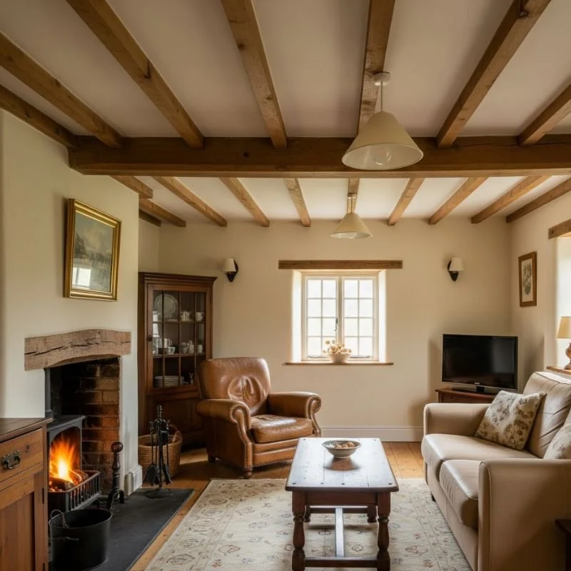 Nothing says cottage quite like exposed wooden beams stretching across your ceiling, creating architectural interest while adding warmth. If you're lucky enough to have original beams, embrace their imperfections and weathered patina. For those without, faux beams offer the same visual impact. Anchor your living room with a plush sofa draped in soft throws and patterned cushions. Mix vintage finds with new pieces, creating layers of comfort. Add a weathered coffee table topped with books, candles, and fresh flowers. Position furniture to encourage conversation, creating intimate seating areas. Remember, cottage living rooms should feel collected over time, not decorated in a day.