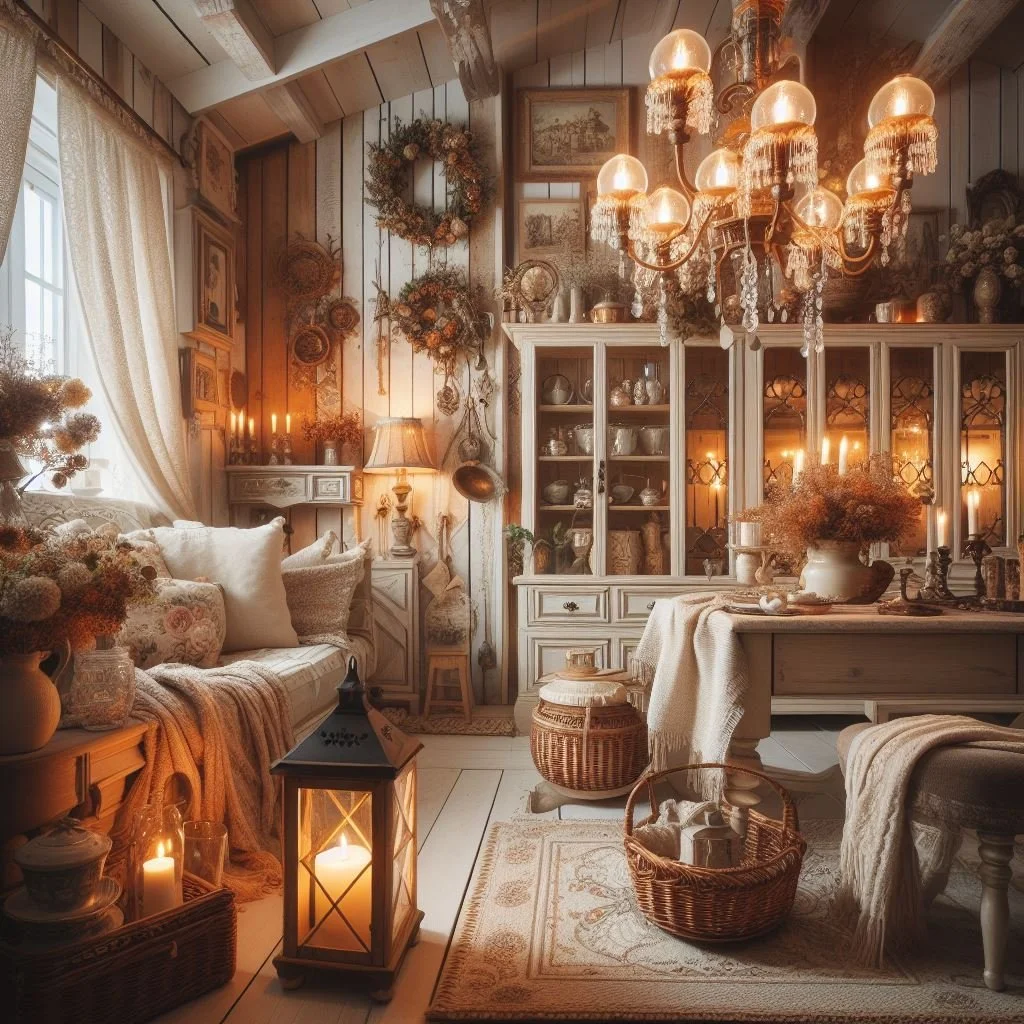 Set the mood in your home with vintage-inspired lighting fixtures that cast a warm and inviting glow. Choose pendant lights, chandeliers, and sconces with intricate details and aged finishes that evoke the charm of a bygone era. Mix and match different styles and sizes to create visual interest and illuminate your space with soft, ambient lighting that enhances the cottagecore aesthetic of your home.