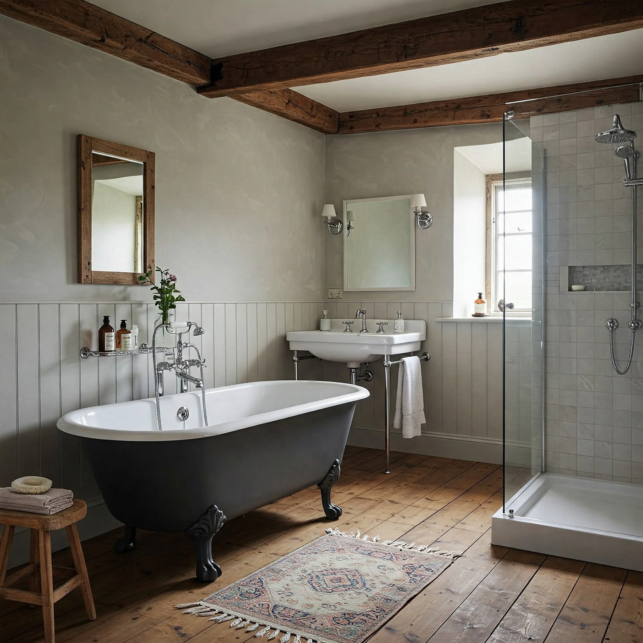 Absolutely. Mixing modern luxuries—like rainfall showerheads—with vintage accents creates a balanced look. Just ensure your finishes and color palette complement each other for a cohesive vibe.