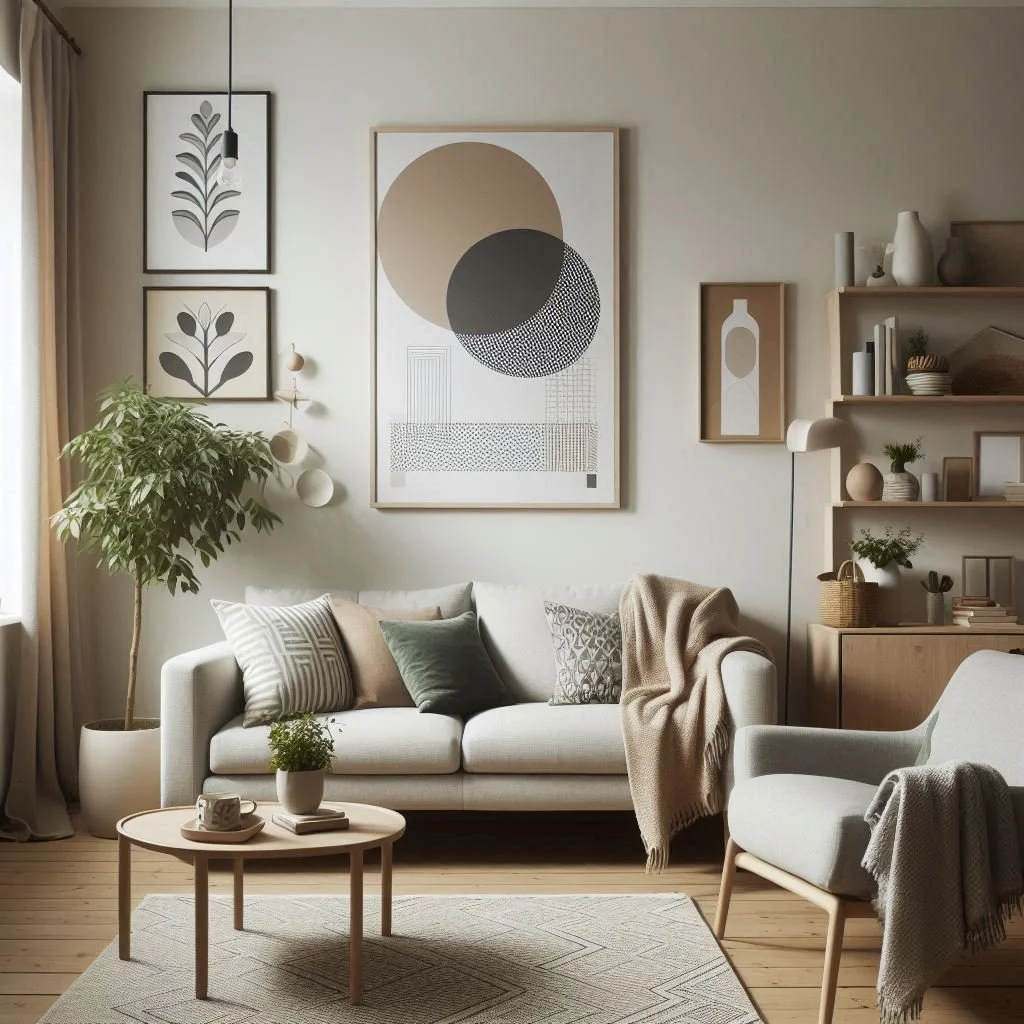 Opt for minimalist art to adorn your walls and enhance your living room's aesthetic. Simple line drawings, abstract pieces, or monochrome photography can perfectly complement the minimalist theme. Select a few well-placed artworks to create a focal point without overwhelming the space. These carefully chosen pieces can add visual interest and personality to your room while maintaining the clean and uncluttered look that defines minimalist design. By focusing on quality over quantity, you ensure that each piece contributes to the overall harmony and balance of your living room.