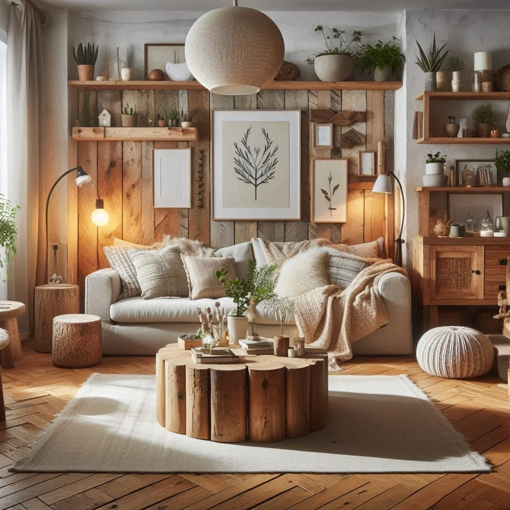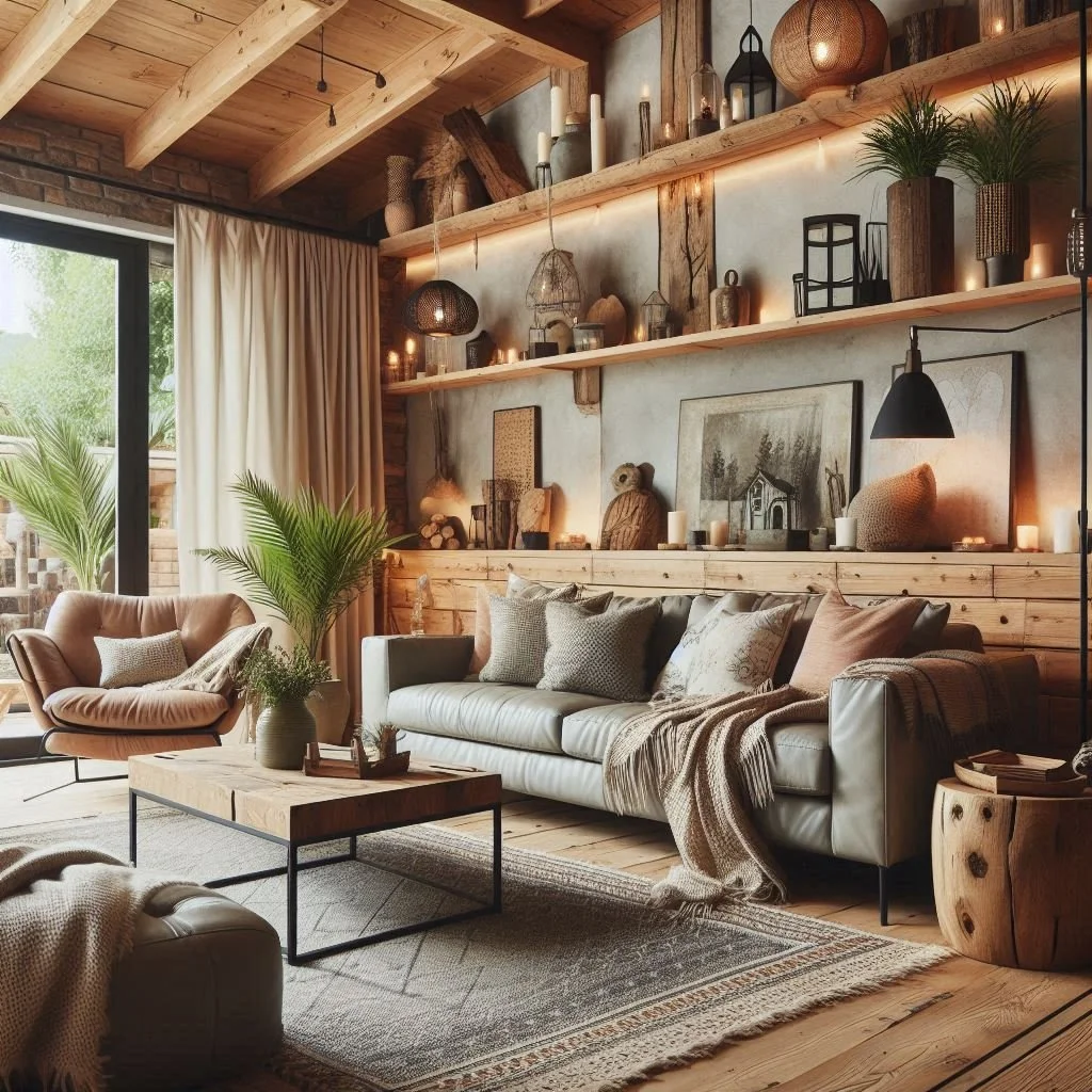 Choose a few key rustic pieces, like a reclaimed wood coffee table, and pair them with sleek, modern furniture or decor to create harmony.