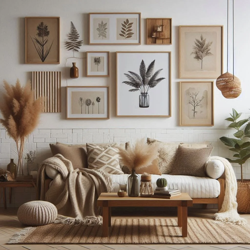 Incorporating plants into your living room brings vitality and warmth, transforming the space into a welcoming haven. Opt for hardy, easy-to-care-for options such as snake plants or pothos, which thrive in a variety of conditions and add lush greenery to your decor. For a low-maintenance alternative with rustic charm, consider dried arrangements like pampas grass or preserved eucalyptus. These natural elements require minimal upkeep while adding texture and an organic feel. Whether fresh or dried, greenery softens the room’s edges and creates a soothing connection to the outdoors, enhancing the overall ambiance. Placing plants strategically, such as in corners, on shelves, or as table centerpieces, enriches the space without overwhelming it. By integrating plants or dried arrangements, you infuse your living room with life, texture, and a timeless connection to the natural world.