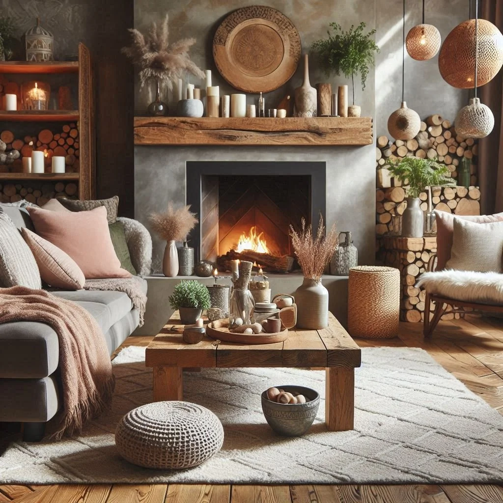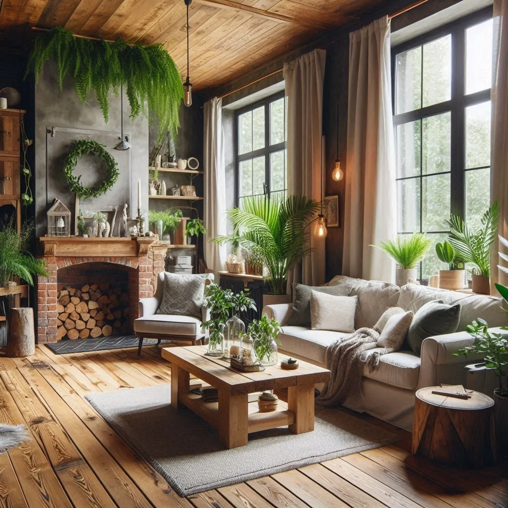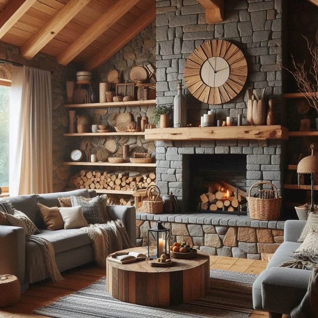 A fireplace serves as the heart and soul of a rustic living room, offering both warmth and a natural focal point that draws people together. Whether you have a traditional wood-burning hearth with its crackling flames or a sleek modern electric version, a fireplace enhances the cozy ambiance of the space. To elevate its charm, decorate the mantel thoughtfully with rustic touches. Arrange candles for a warm, flickering glow, display artwork that complements the room’s aesthetic, or keep it simple with a natural wooden beam for understated elegance. The combination of functional warmth and decorative flair makes the fireplace a central feature, embodying the inviting essence of rustic design. Regardless of the style, a well-dressed fireplace brings character and comfort, anchoring your living room as a welcoming retreat for family and friends.