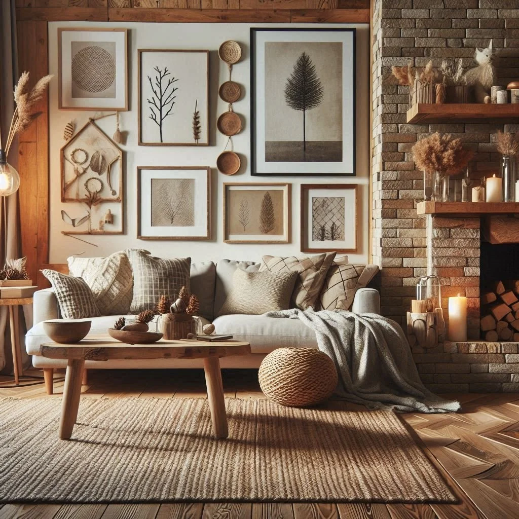 Your walls are an opportunity to showcase creativity and set the tone for your living room’s style. Choose artwork that brings the essence of the outdoors inside, such as serene landscape paintings, intricate botanical prints, or abstract pieces in earthy tones. These natural-inspired elements complement a rustic aesthetic while adding depth and character to the space. For a striking impact, consider oversized artwork that acts as a focal point, drawing attention and creating a bold statement. Alternatively, arrange smaller pieces in clusters to achieve a curated gallery wall that feels personal and dynamic. Mixing frame styles or materials can further enhance the rustic-modern vibe. Whether you prefer minimalist designs or rich, detailed compositions, thoughtfully selected wall art transforms your living room into a warm and inviting reflection of your personality and connection to nature.