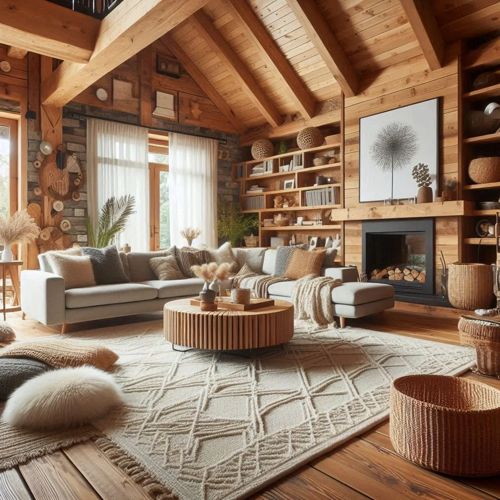 Reclaimed wood is a hallmark of rustic design, bringing warmth, character, and a sense of history to any modern rustic living room. From coffee tables crafted from old barn wood to floating shelves made from salvaged beams, these pieces add authenticity and a story to your space. The weathered textures and natural imperfections of reclaimed wood create a connection to the past, infusing your room with rustic charm. To keep the look balanced and contemporary, pair these elements with sleek, modern furniture and clean lines. For example, a reclaimed wood coffee table can sit beautifully alongside a minimalist sofa or metallic accents, blending rustic warmth with modern sophistication. This combination creates a harmonious contrast, making your living room feel inviting yet stylish. Incorporating reclaimed wood ensures your space reflects both timeless charm and contemporary design sensibilities.