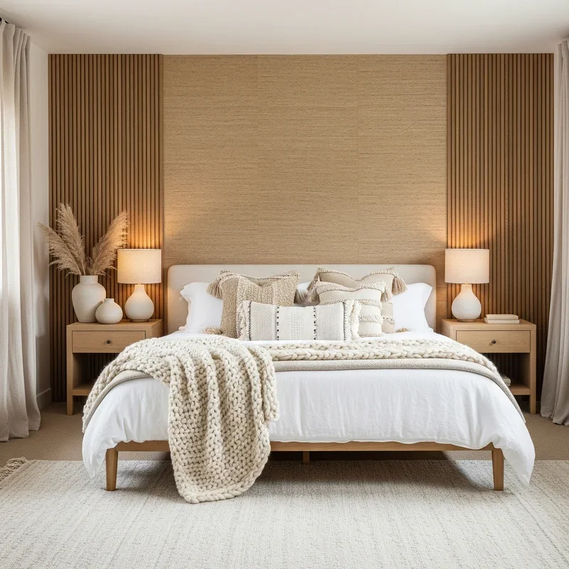Add dimension to your neutral bedroom with textured wall treatments that create interest without introducing color. Walls that wow! Consider grasscloth wallpaper in natural tones for organic texture. Try limewash or textured paint techniques that add depth to plain walls. Board and batten or shiplap creates architectural interest while maintaining neutrality. Fabric wall panels in linen or burlap add softness and sound absorption. The texture catches light differently throughout the day, creating subtle visual changes. These treatments work especially well behind headboards as feature walls. Your textured walls become the subtle star that proves neutral doesn't mean flat or boring.